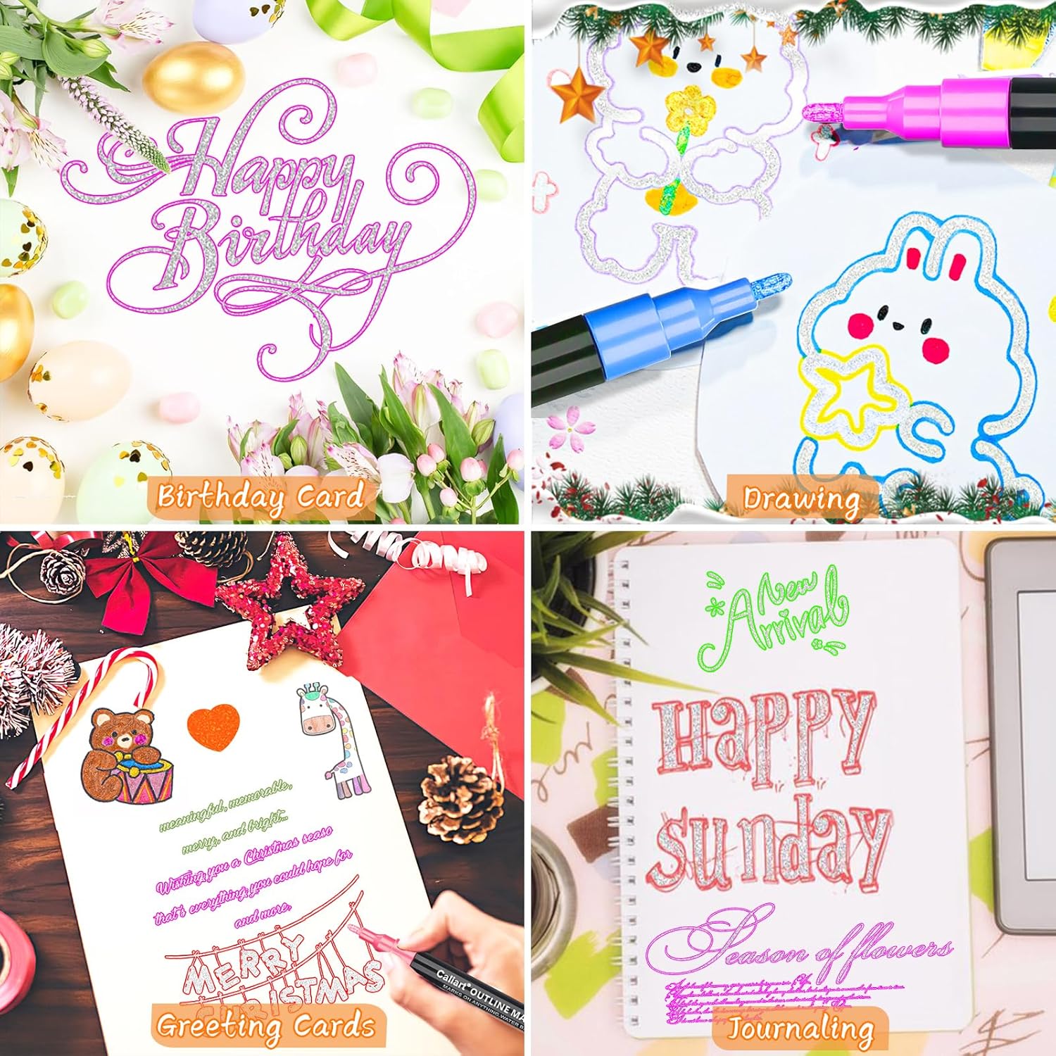 - Widely Used - These double outline markers are great for arts, crafts, coloring, stamping, Gift cards, Greeting cards, Christmas cards, Personality Posters, school projects, DIY Craft Projects.
