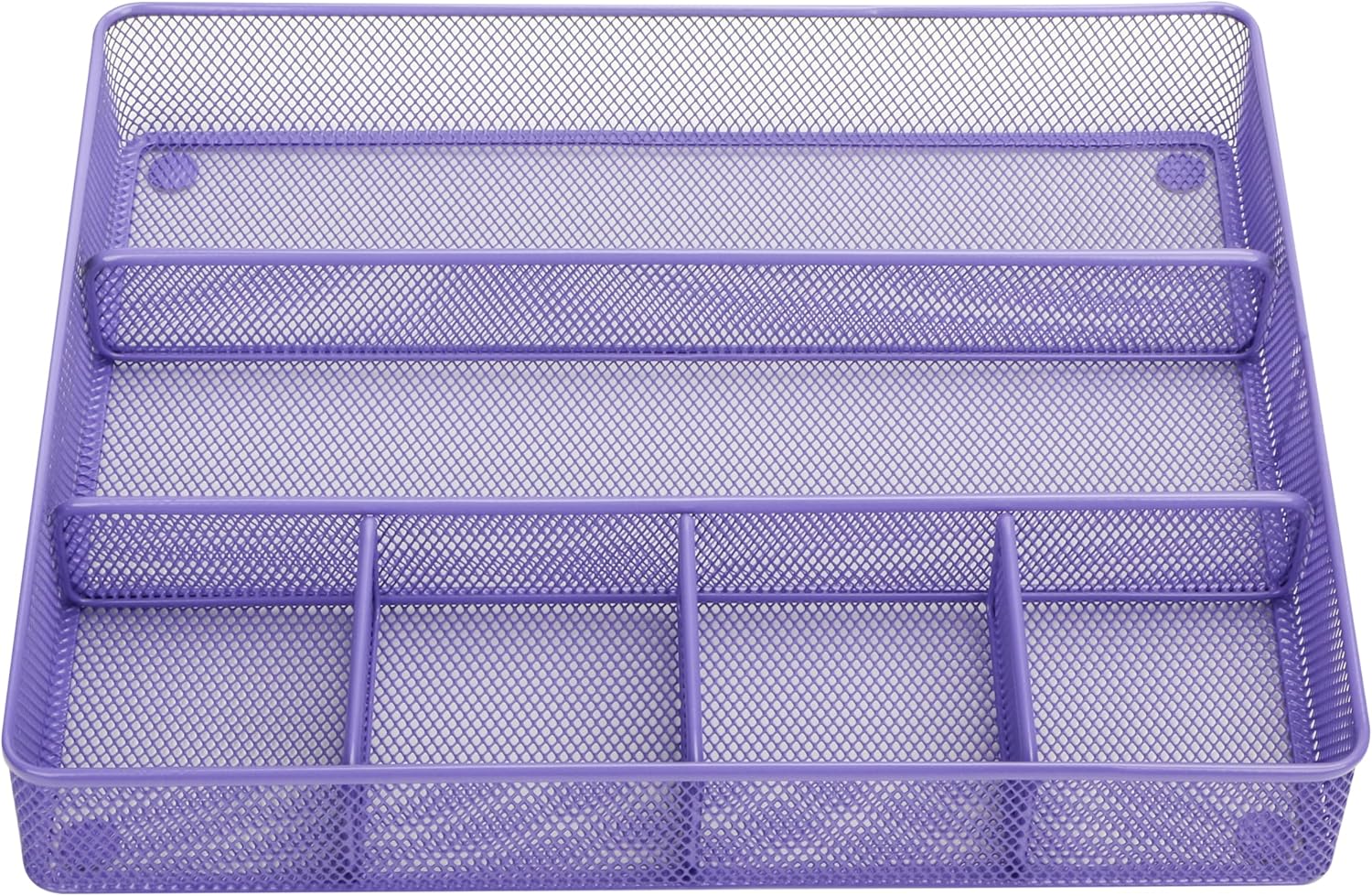 Annova Desk Top Organizer Tray for Office Organization - Metal Mesh - Storage Tray with Dividers for Pens, Desktop Accessories, Bathroom, Kitchen, Makeup and Office Supplies (Large, Purple)