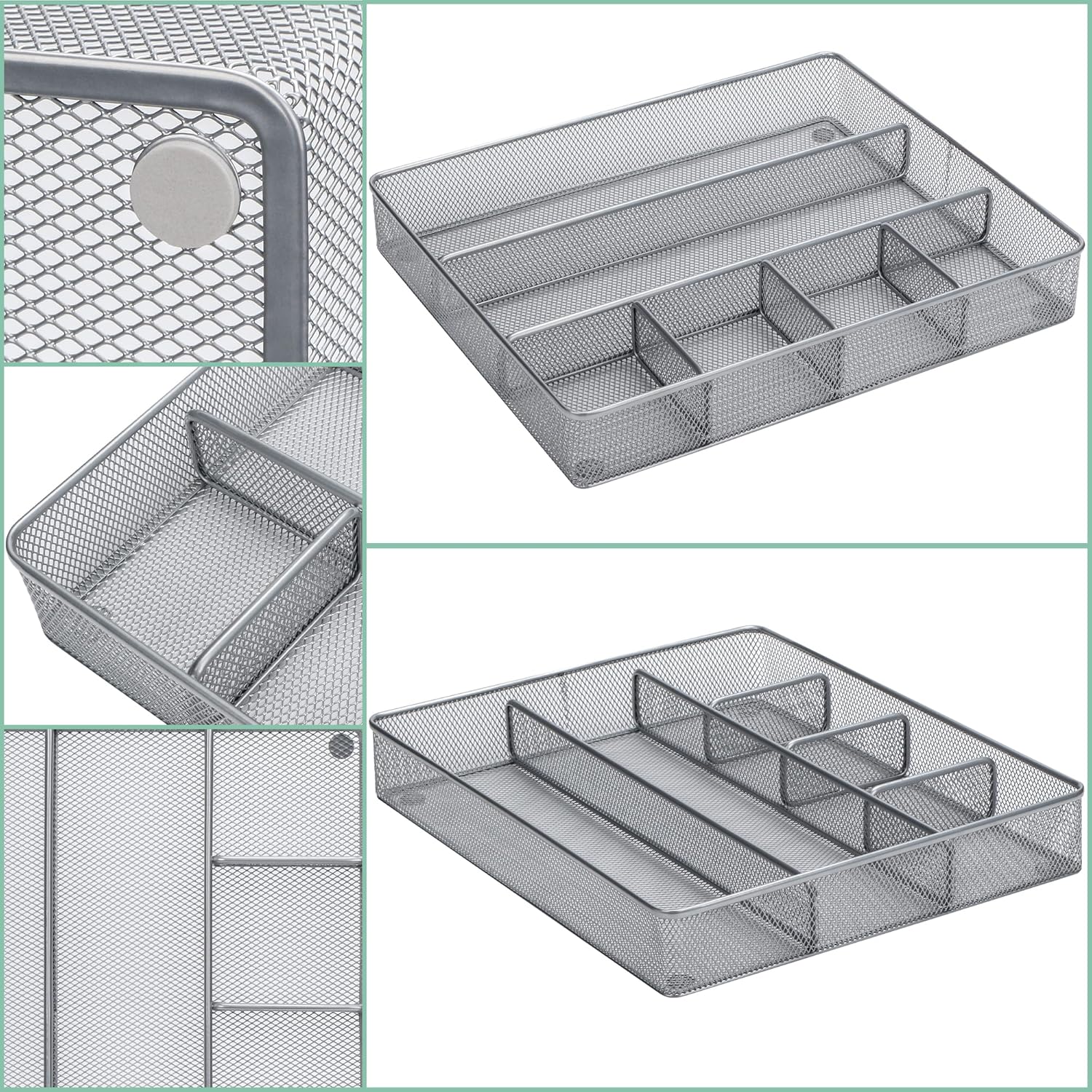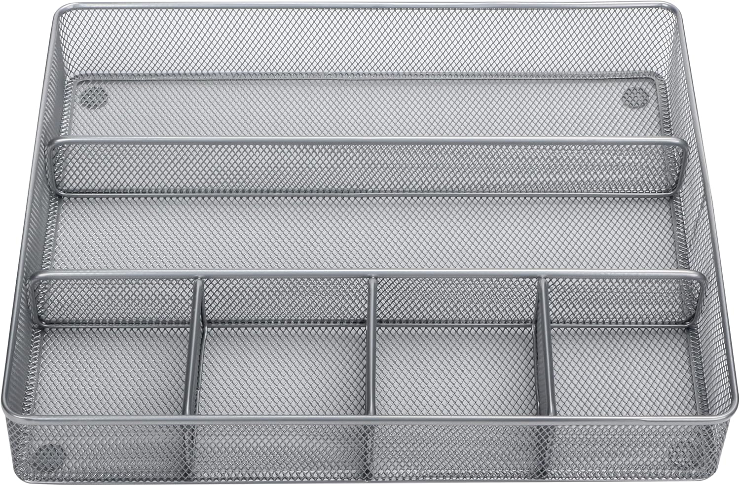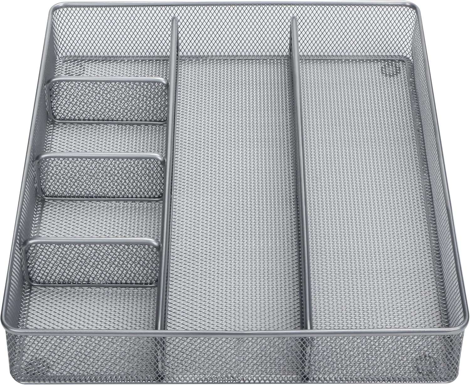 Annova Desk Top Organizer Tray for Office Organization - Metal Mesh - Storage Tray with Dividers for Pens, Desktop Accessories, Bathroom, Kitchen, Makeup and Office Supplies (Large, Silver)