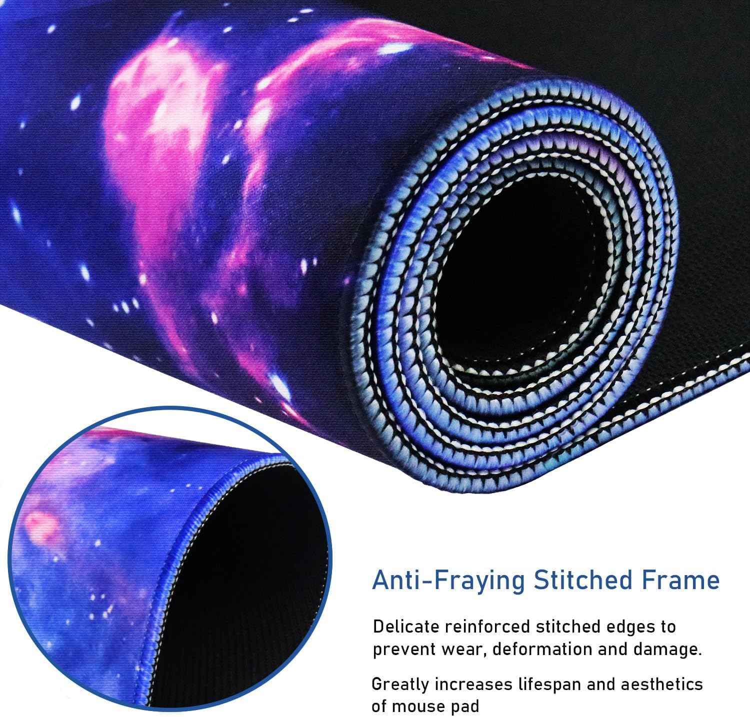 Large Extended Gaming Mouse Pad with Stitched Edges, (31.5X15.7In) Durable Non-Slip Natural Rubber Base, Waterproof Computer Keyboard Pad Mat for Esports Pros/Gamer/Desktop/Office/Home, Galactic Blue