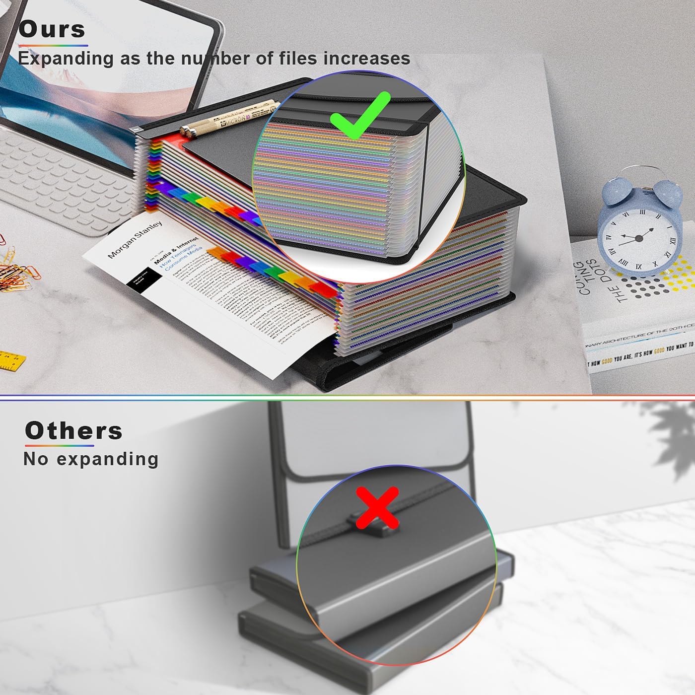 - 【Super Portable and Secure Closure】: Compared with other bottom expandable accordion folders, a handle is added, which makes it very easy to move. Other file folders with a plastic handle usually cannot expand at the bottom, which greatly limits its usable capacity. Our folder does not have this trouble. It is easy to move and has enough capacity.ABS Buckle and elastic band provide perfect secure closure.