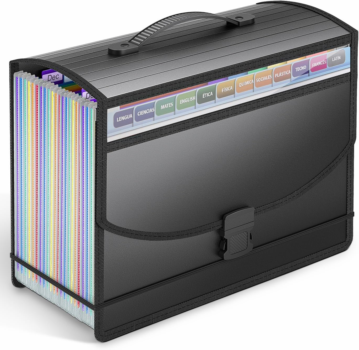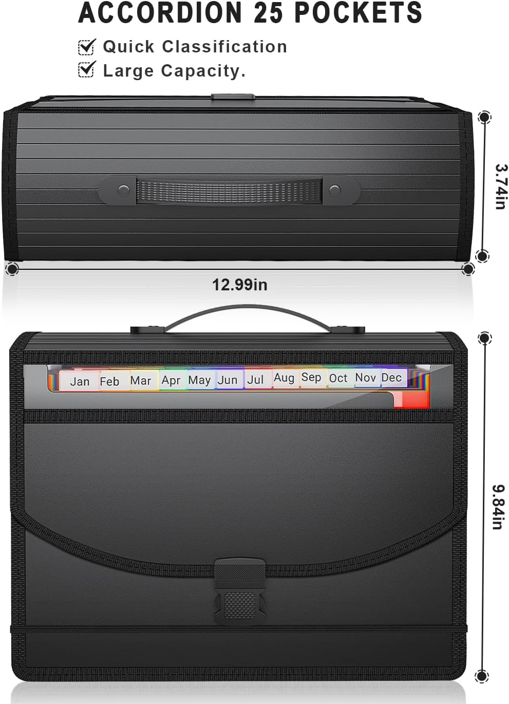 - 【Easy Organisation and Quick Lookup】: The colored file box,comes with printed label for alphabetical A-Z and monthly Jan-Dec and blank label for handwriting, this accordian file organizer helps keep all of your paper work well sorted and quick identification for important documents by unique indexing labels.Fits for A4 or Letter Size Sheet.