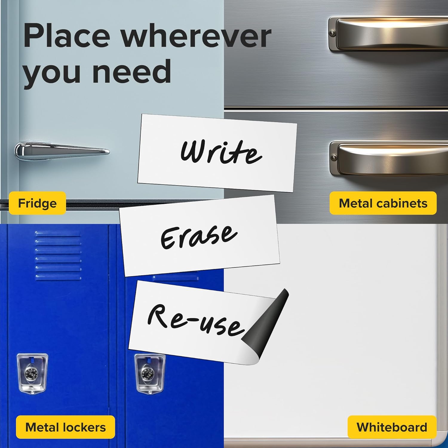 Dry Erase Magnetic Labels - Reusable Sticky Notes - Magnetic Notepads for Refrigerator (White, 50)