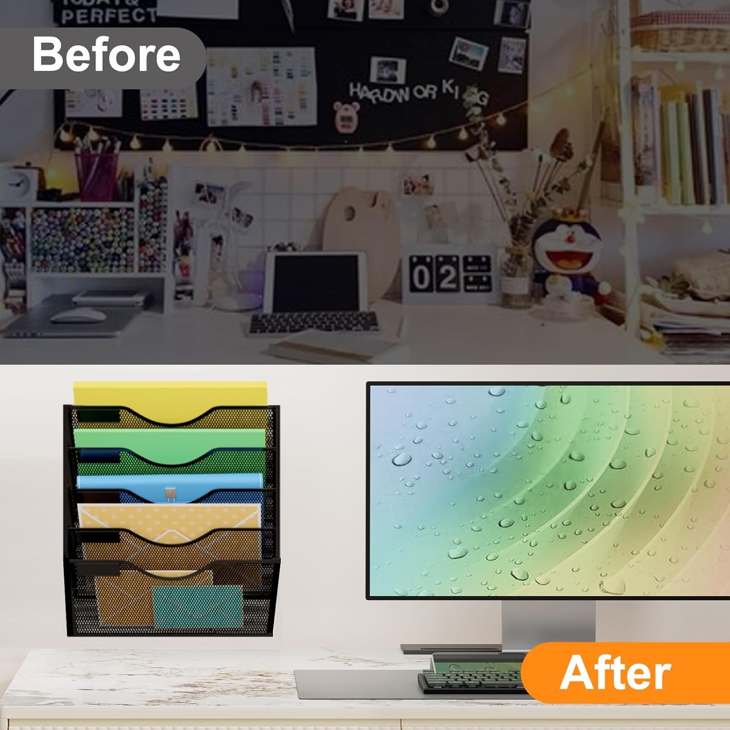 - Get rid of desk clutter, make your home or office well organized. This wall organizer can be a great addition to any workspace or home office.