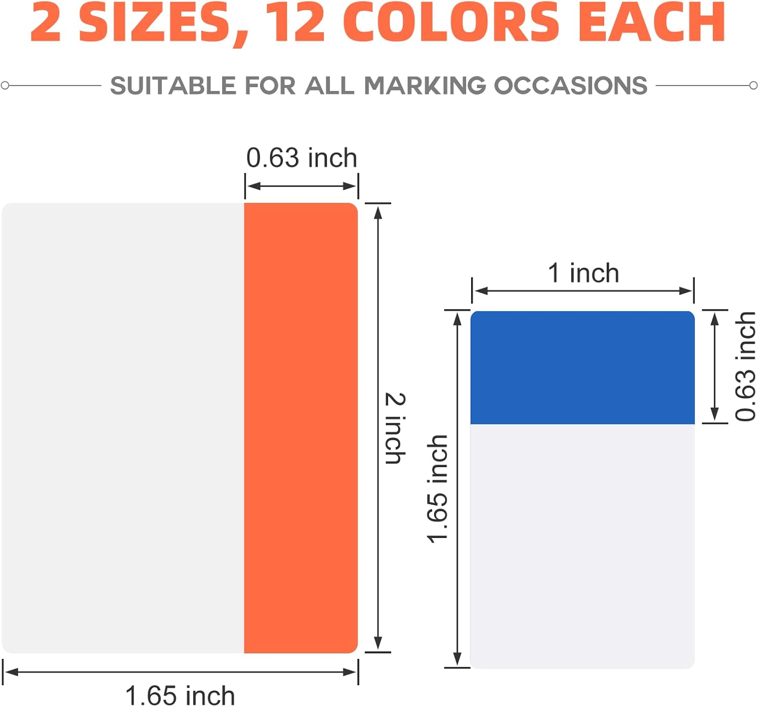 - What you get - 2 sizes of reusable tabs, 1 inch x 240pcs, 2 inch x 240pcs, 10 different colors, color as picture displayed, 24 sets in total, 20 pieces per set