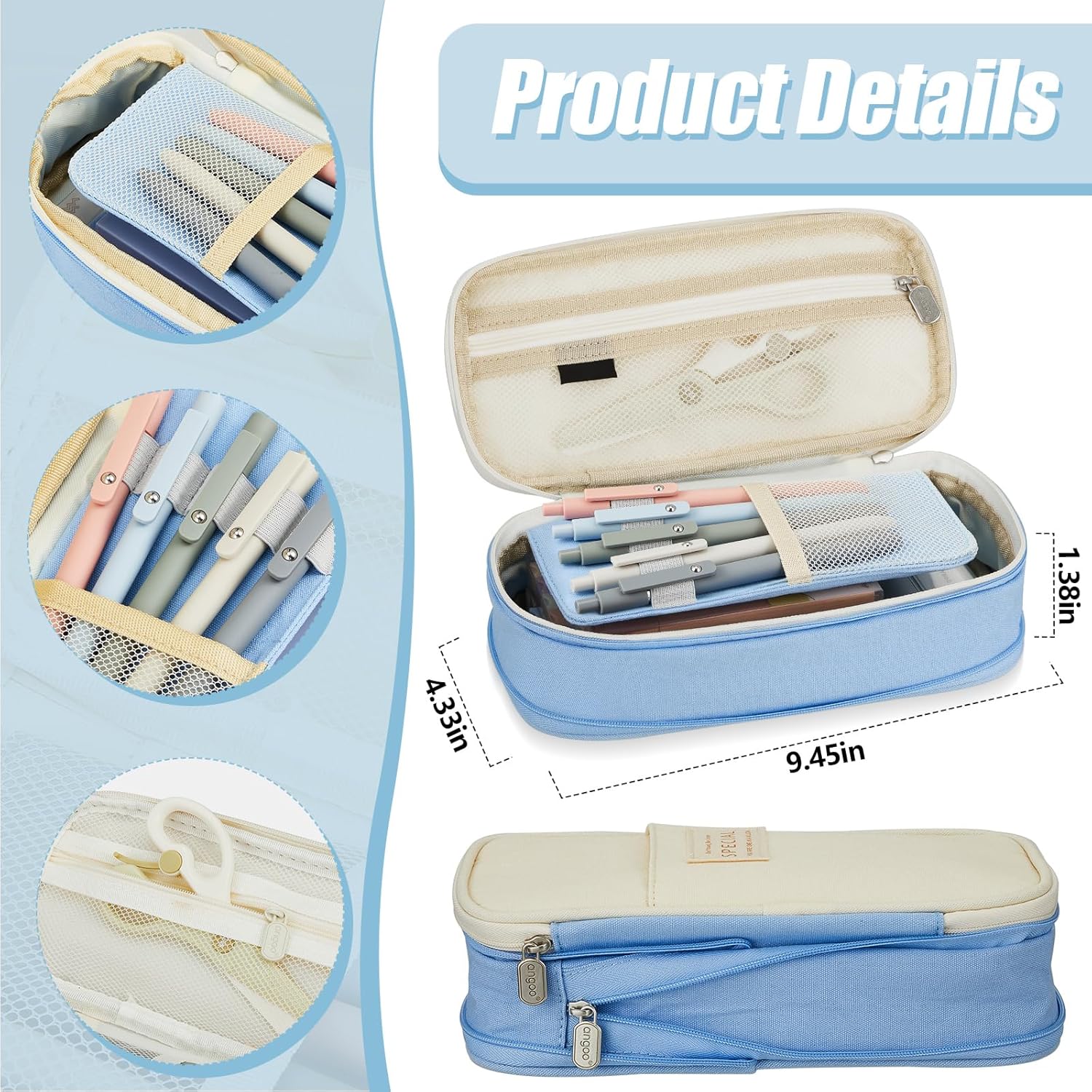- Large Capability: blue pencil case measures about 9.45 x 4.33 x 1.38 inch/ 24 x 11 x 3.5 cm, with sufficient space for you to store various stationery, like pens, marker pens, rulers, eraser, pencils and more; Cute pencil bag can be folded, compact and convenient to store and carry around