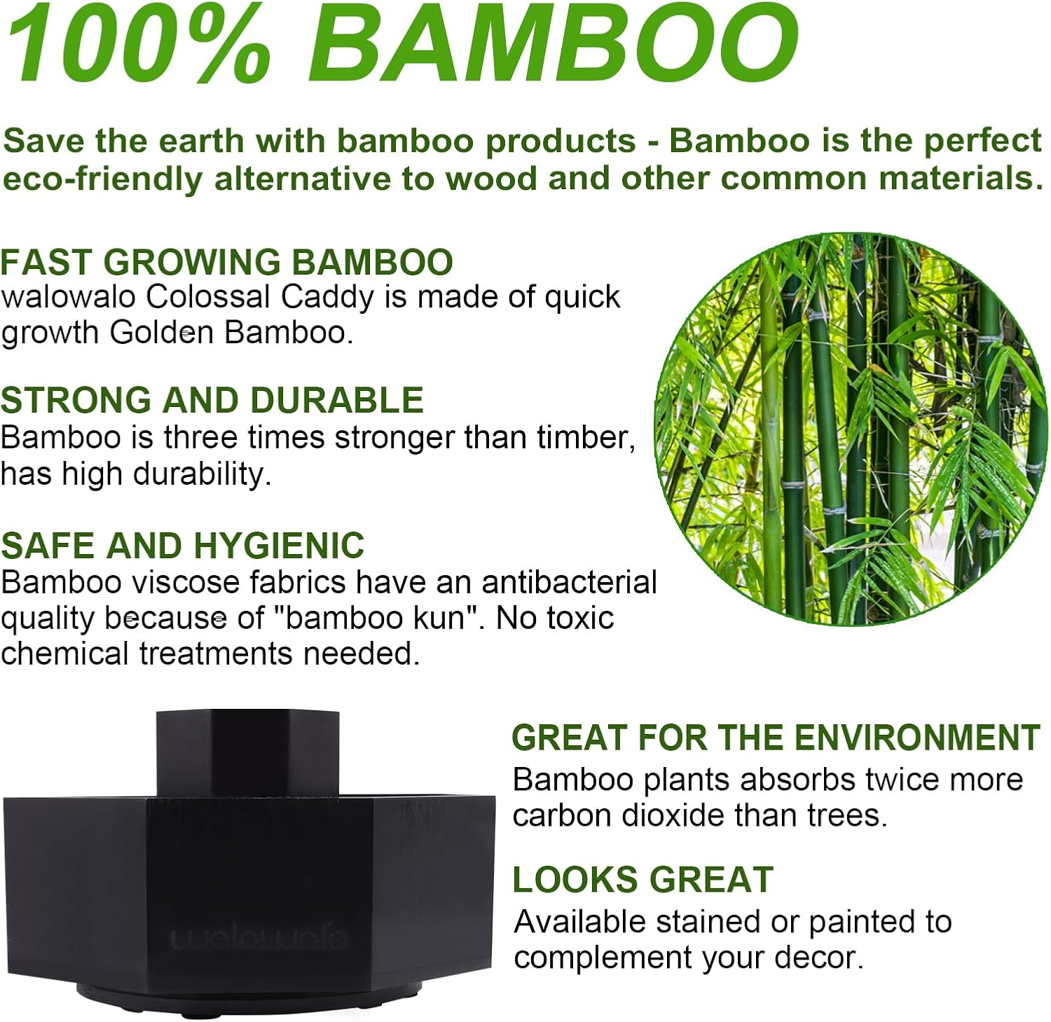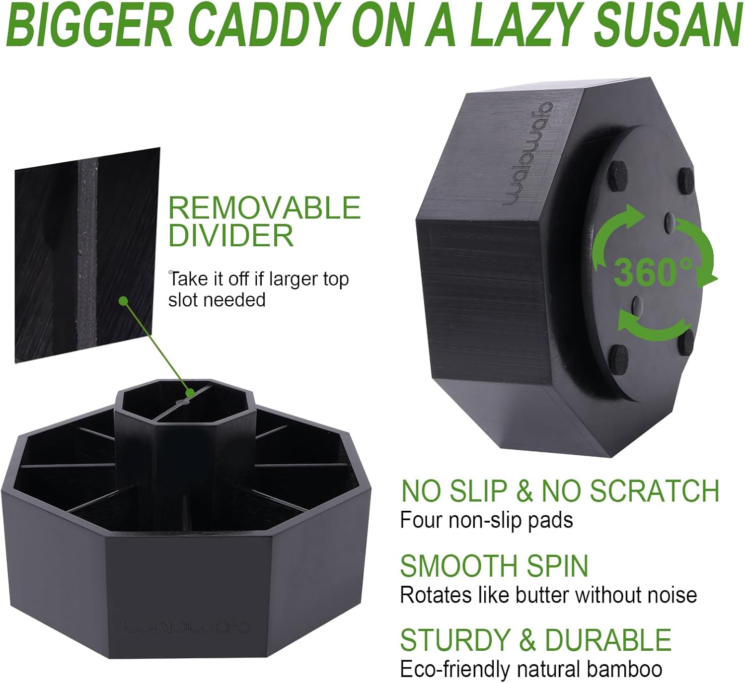 - BAMBOO PRODUCT - You will like the natural bamboo design. The rotating caddy fits for different style of decor. Also, available stained or painted if you prefer to.
