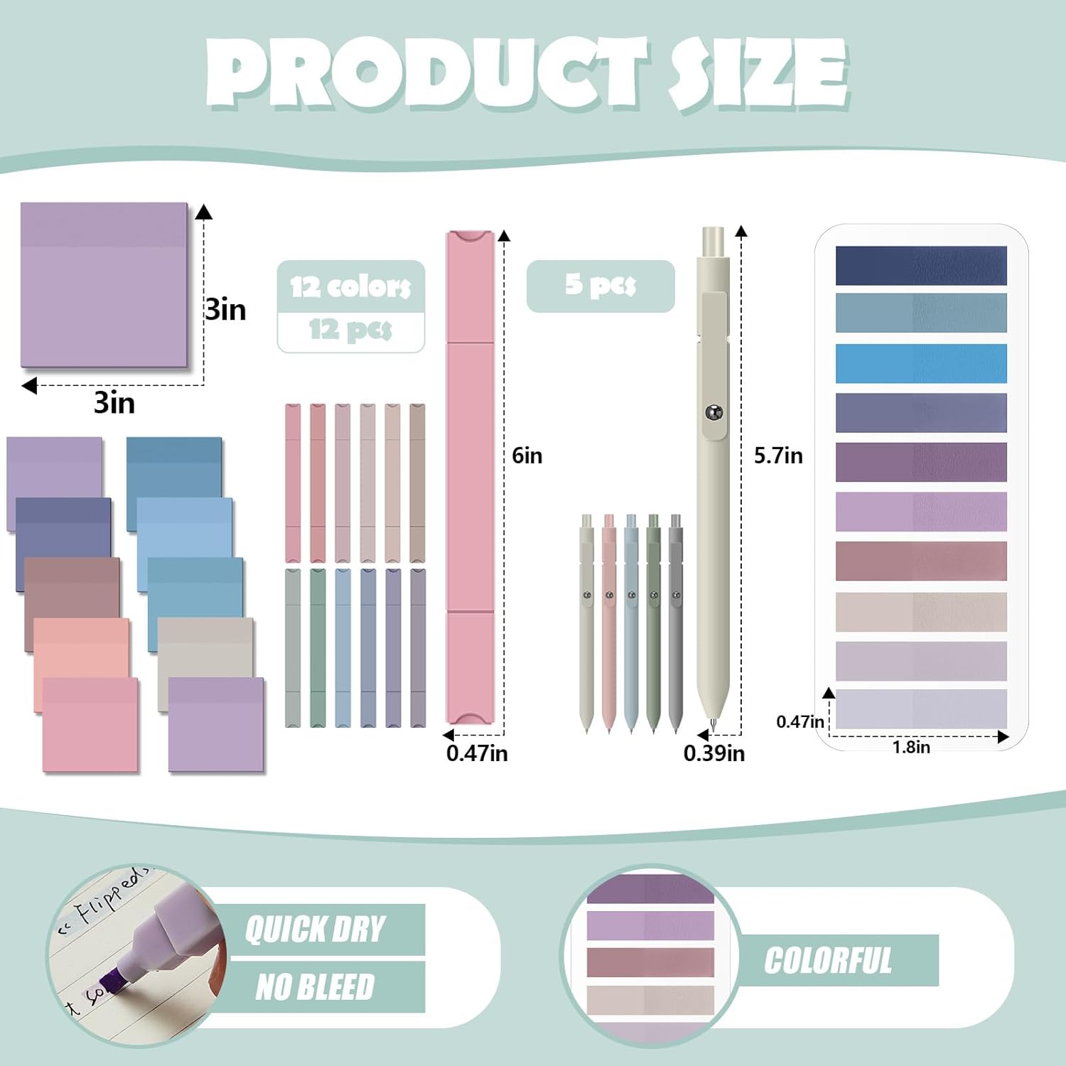 - Ideal Combination to Meet Your Needs: you will receive 10 sheets of transparent sticky notes in different colors, each sheet has 50 pieces, 500 pieces in total, 1 sheet of sticky tabs in 10 colors, each color has 20 pieces, 200 pieces in total, 1 marker, 12 dual ended highlighters in various colors and 5 gel pens; The combination is sufficient for you to apply and replace, and can easily meet your daily use and other requirements