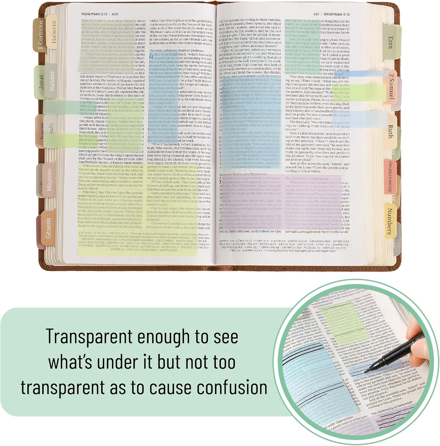 - Each pad is made with transparent paper, allowing you to see text underneath without obscuring important information, perfect for textbooks, documents, and planners.