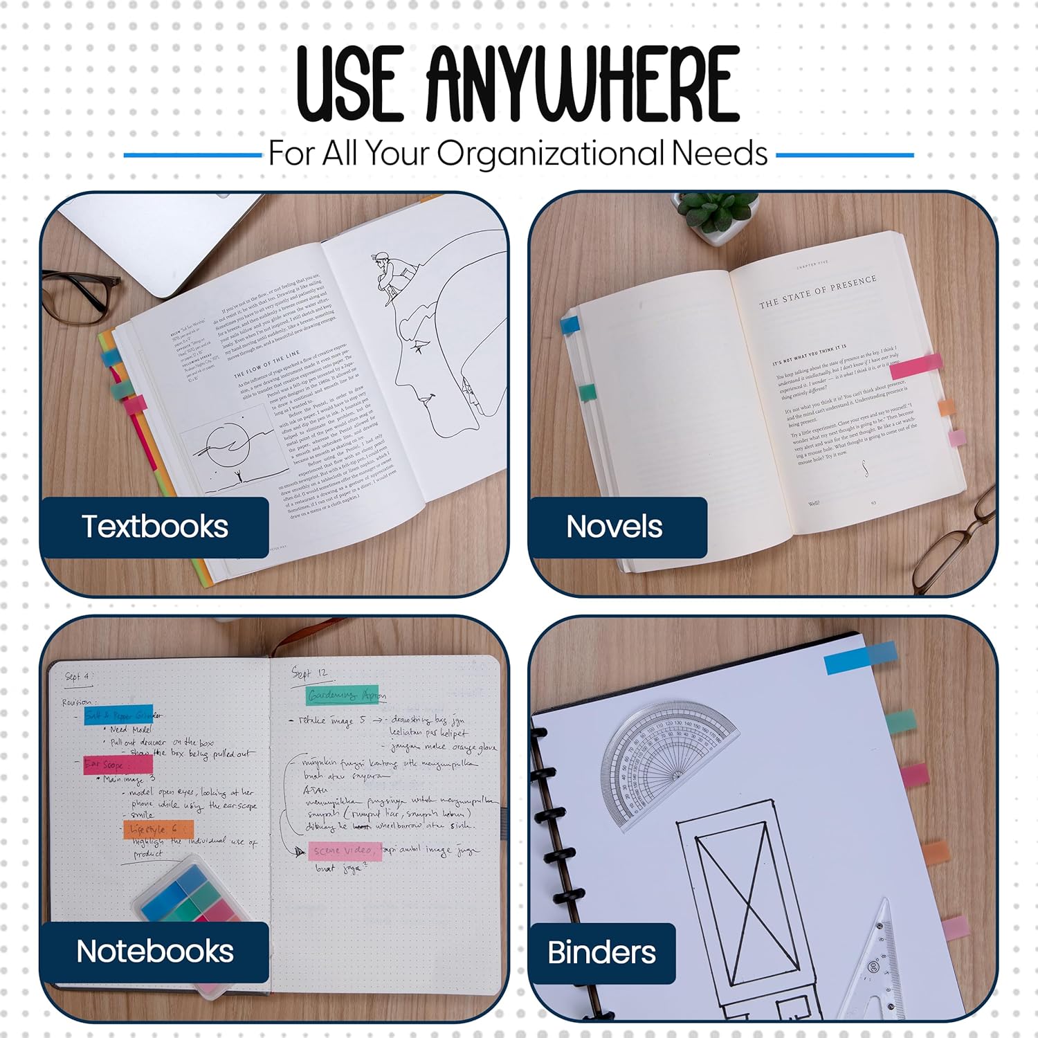 - Stay On-Point with Your Notes - Highlight important text or bookmark with ease using our 5-color sticky note tabs for books and documents! Their matte, transparent design makes organization a breeze while ensuring clarity.