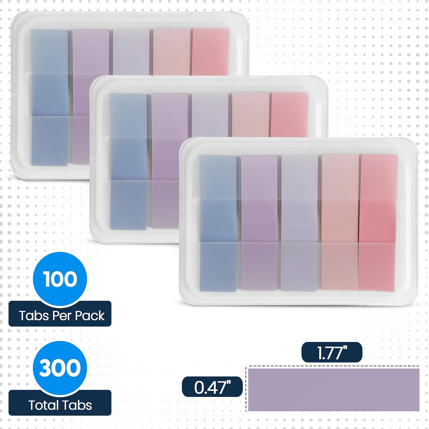 - High-Quality Material - Our page flags for annotating books are smooth, water-resistant, and transparent. Their strong stickiness won't damage paper. Each color on each card has 20 tabs - 300 total.