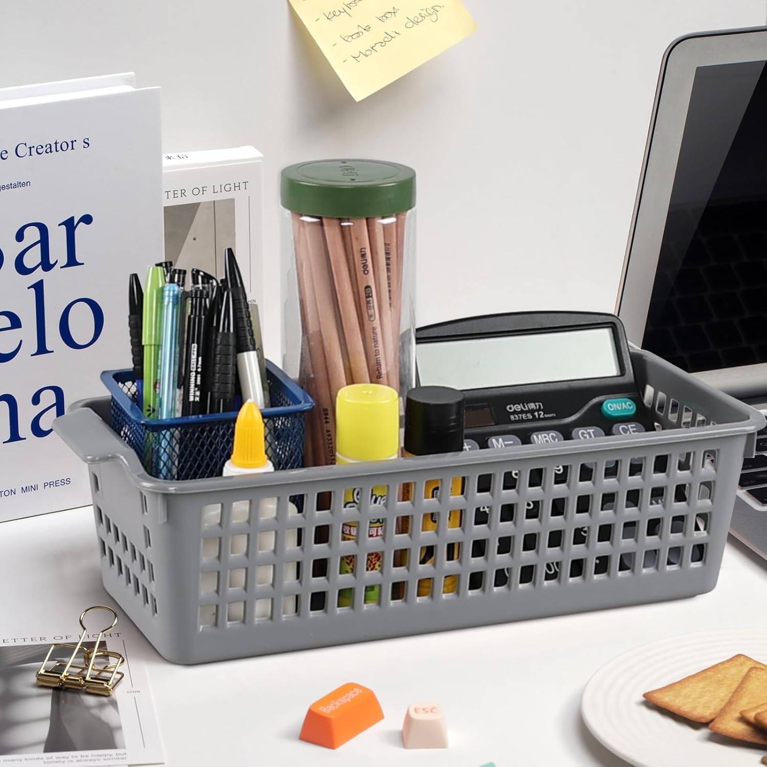 6 Packs Slim Plastic Storage Trays Baskets,Pencil Organizer 11.61" x 5.03", Grey