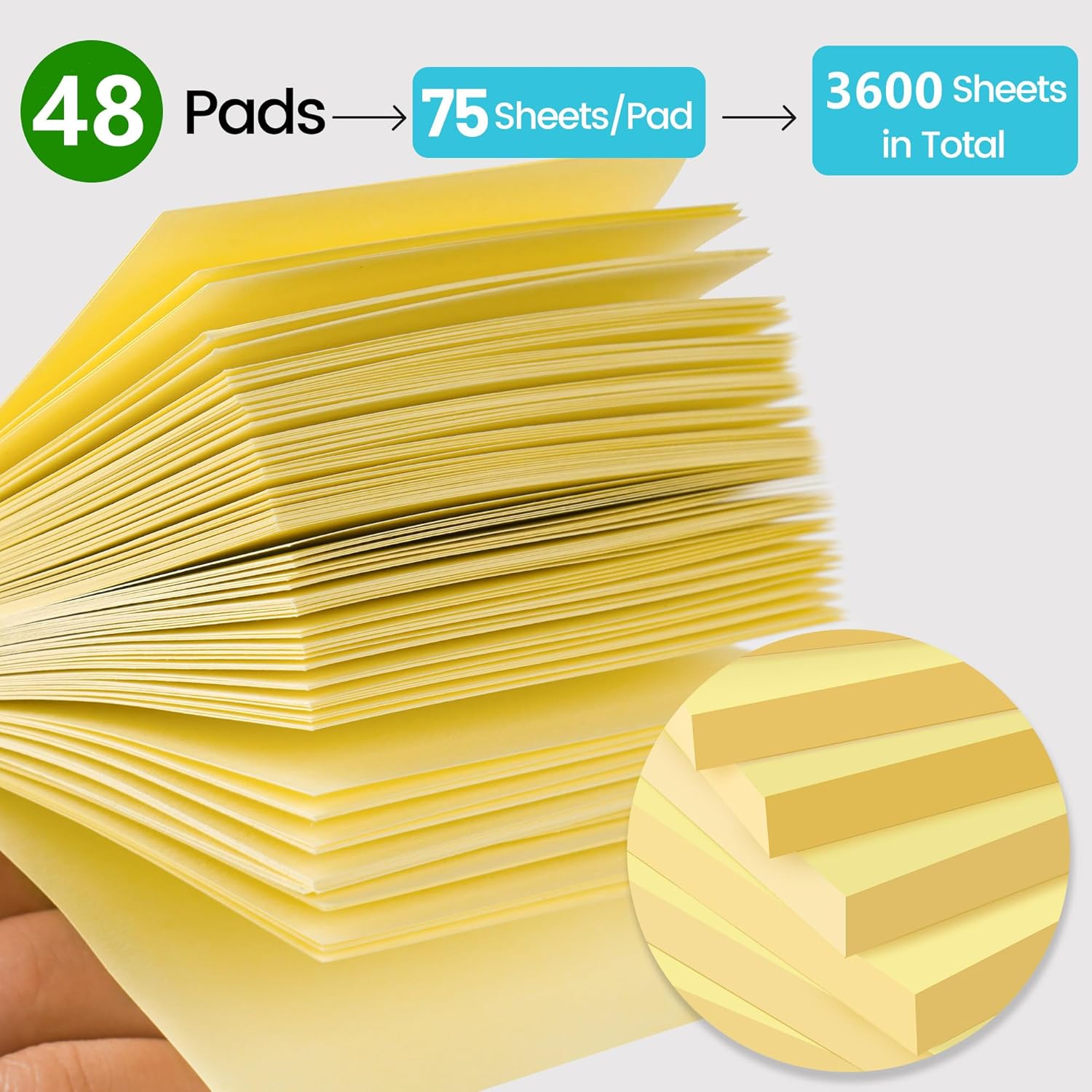 (48 Pack) Sticky Notes 3x3 in Yellow, Clean Removal, Recyclable, Self-Stick Pads, Easy to Post for Home, Office, Notebook