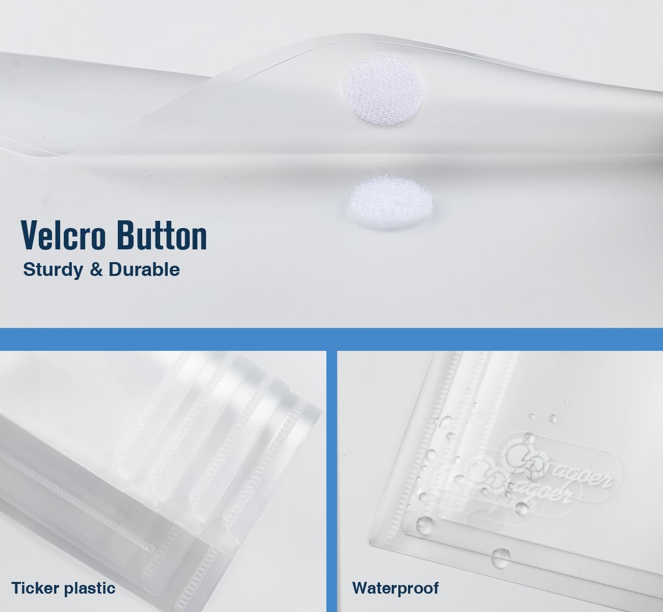 - Hook & Loop Closure and Label Pocket Design: High-quality clear document bag with hook & loop closure, easy and convenient to take and store lightweight things, and study to last long after multiple repeats. Plastic Envelopes have a pocket for labels to distinguish documents easily.