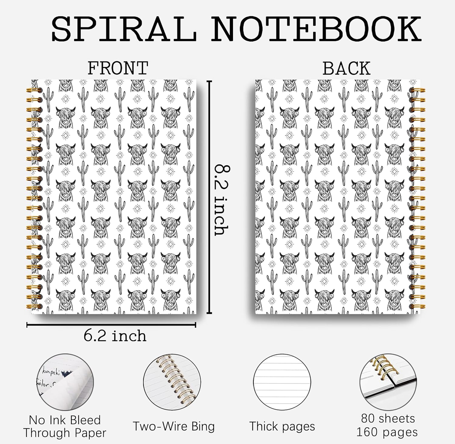 Western Cow Journal Notebook Spiral - Cow Spiral Journal Notebook, Western School Office Supplies, Cow Office Supplies with 164 Pages, Funny Office Gifts, 5.5×8.3