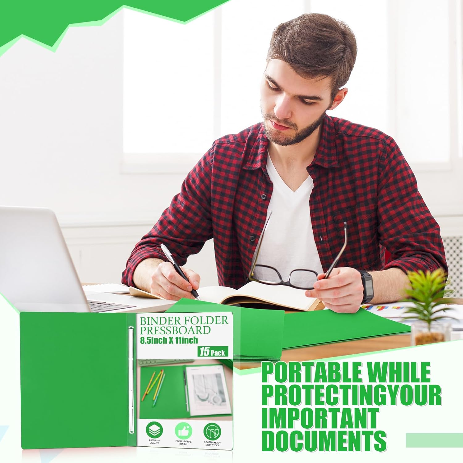 Zhanmai 15 Packs 8.5'' x 11'' Pressboard Report Covers, Metal Prong Fastener with Compressor, Letter Size 3'' Capacity Presentation Report Folder to Neatly Bind Reports, Proposals, Documents(Green)