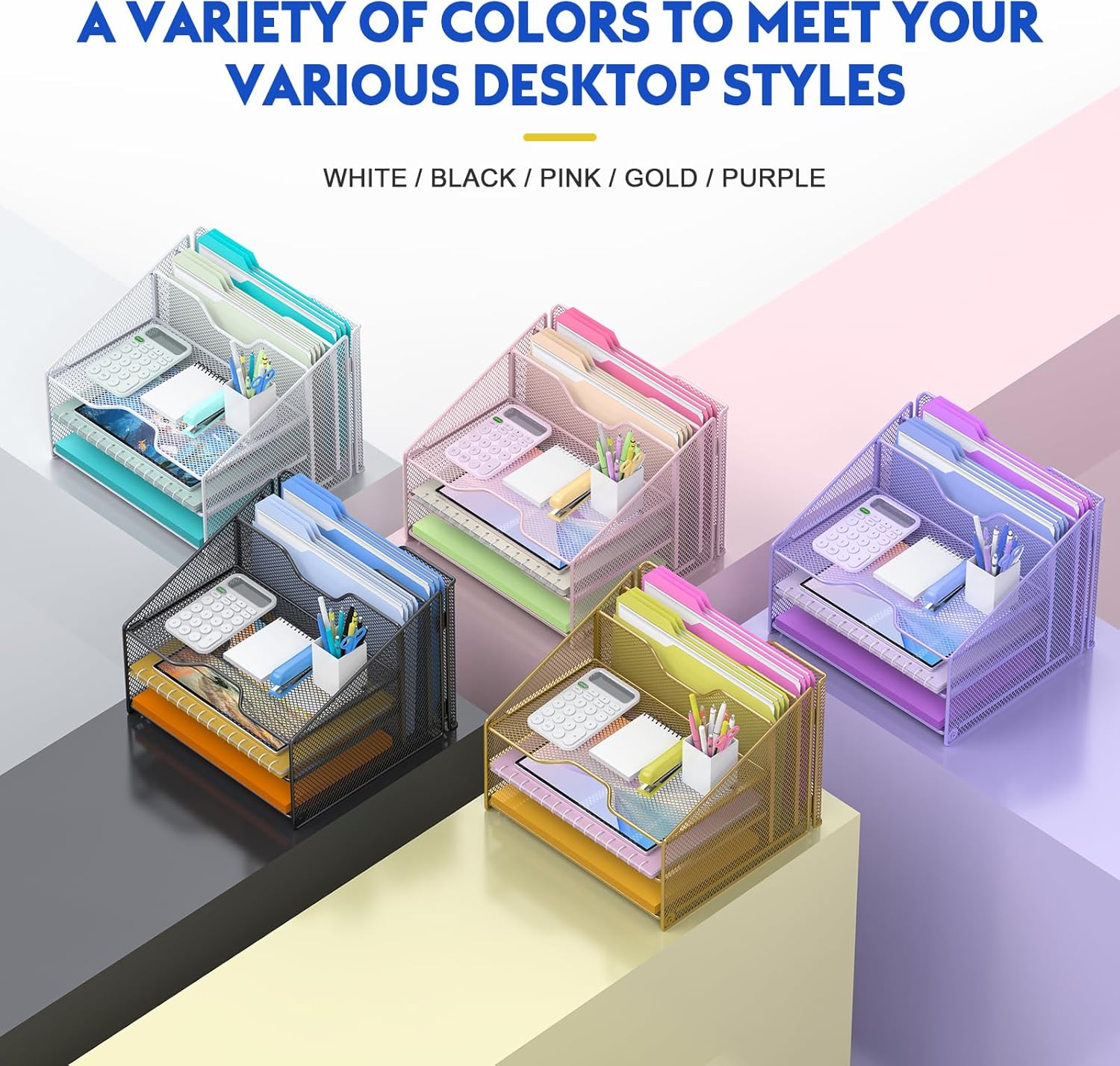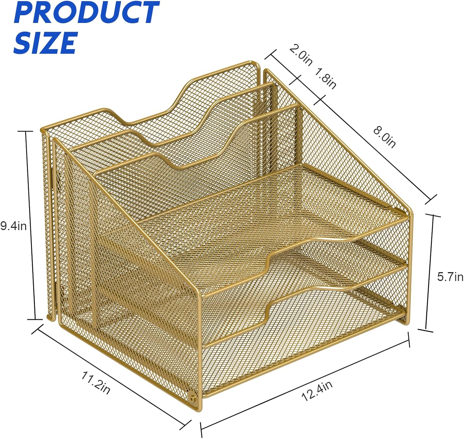 - NEW Color Available, Gold, Made of sturdy metal mesh with smooth edge and professional gold finish, more durable and stable, strong enough to hold all your files and sundries.