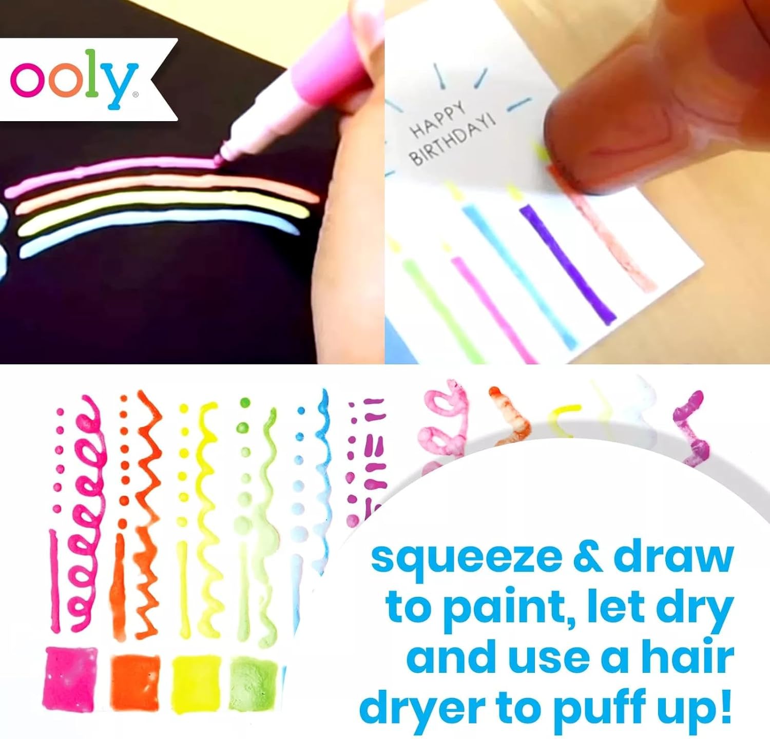 - MAGIC INK: It's all in the magic ink; just draw with your Magic Puffy Pens, let dry and add heat from a hair dryer and you've got incredible 3D art.