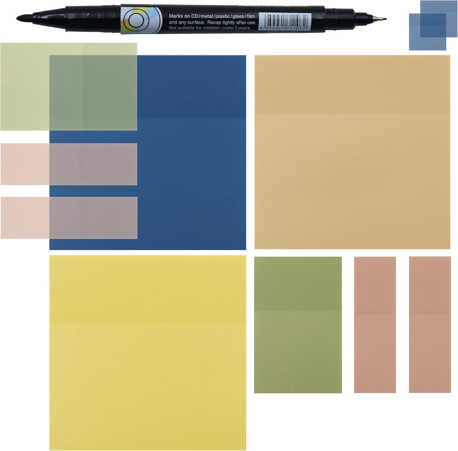 - 【Tips】The transparent sticky notes are made of waterproof PET, and for a better user's experience, please use markers, ballpoint pens, pencils, oil-based markers to write on translucent sticky notes. Gel and water-based pens are not recommended. And our marker pen has thick and thin ends, writes smoothly, is very easy to write anything and dries in seconds.
