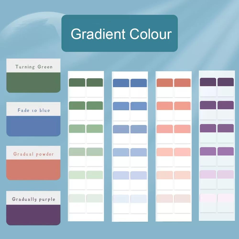 - 【24 Colorful Tabs】: 24 different light color index tabs in pink gradient, purple gradient, green gradient, blue gradient, colorful and eye-catching, you can choose various colors to sign on the borders of the books or folders to help find and locate information efficiently.