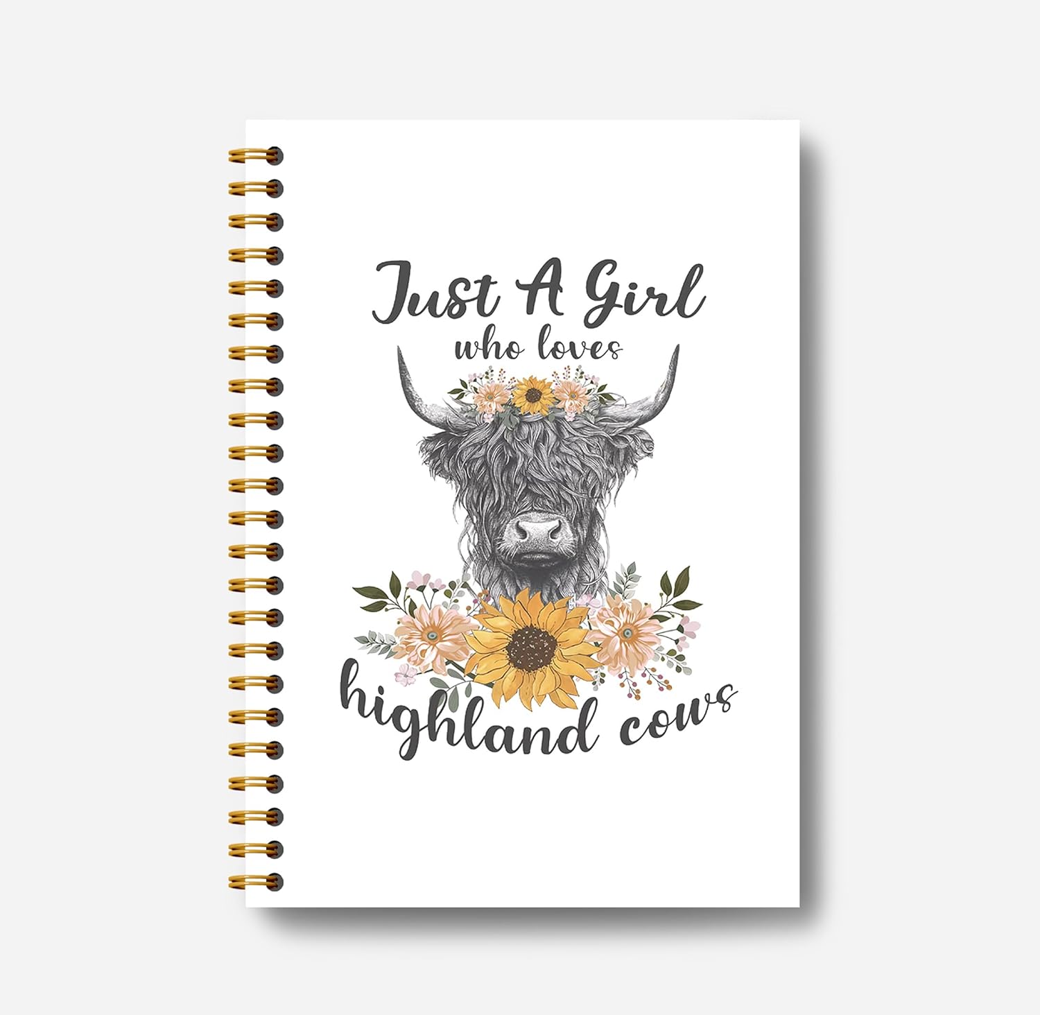 Highland Cow Notebook - Western Notebook, Cow Notebook, Highland Cow Office Supplies, Highland Cow Gifts, Cow Stuff, Just a Girl Who Loves Highland Cows Spiral Notebook 5.5x8.3