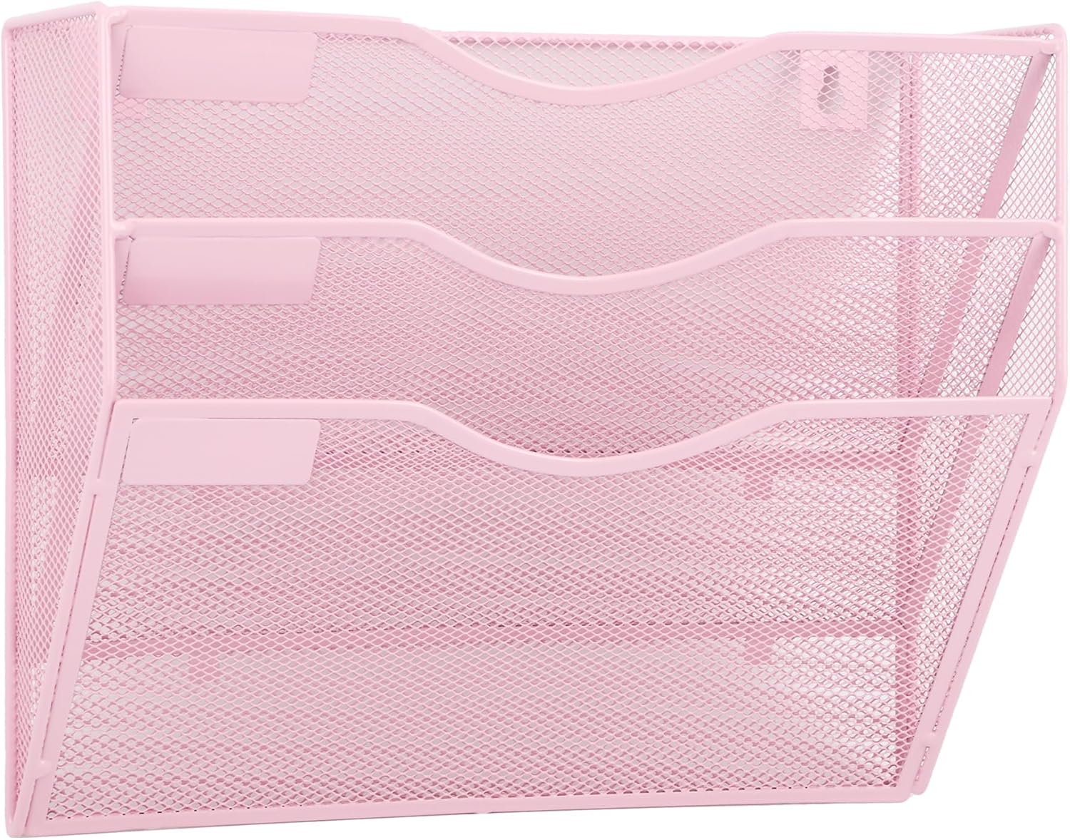 EASEPRES 3 Pocket Mesh Hanging Wall File Organizer, Wall Mounted Mail Paper Document Folder Holder, Clipboard Storage Organization Magazine Rack with Nametag Label for Office Home School, Pink
