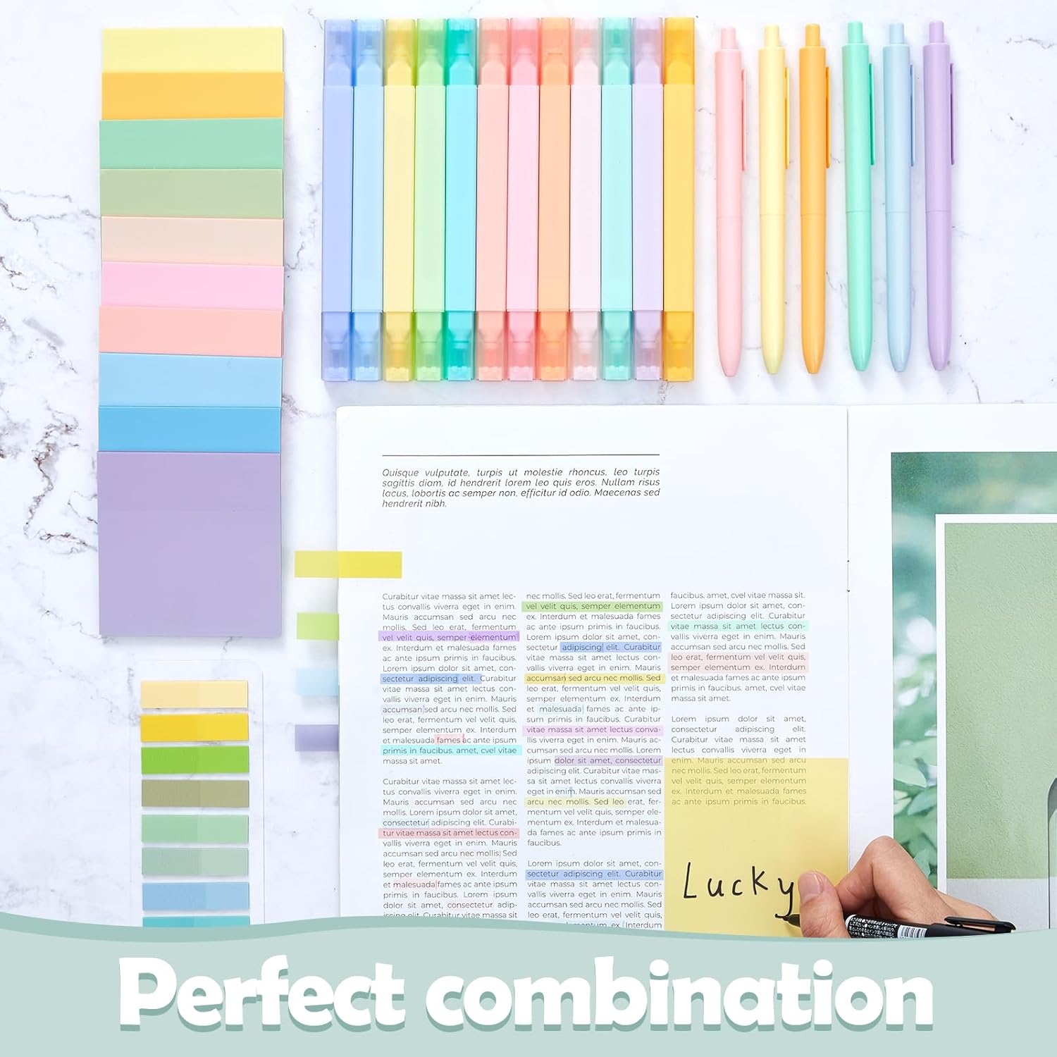 - Ideal Combination to Meet Your Needs: you will receive 10 sheets of transparent sticky notes in different colors, each sheet has 50 pieces, 500 pieces in total, 1 sheet of sticky tabs in 10 colors, each color has 20 pieces, 200 pieces in total, 1 marker, 12 dual ended highlighters in various colors and 5 gel pens; The combination is sufficient for you to apply and replace, and can easily meet your daily use and other requirements