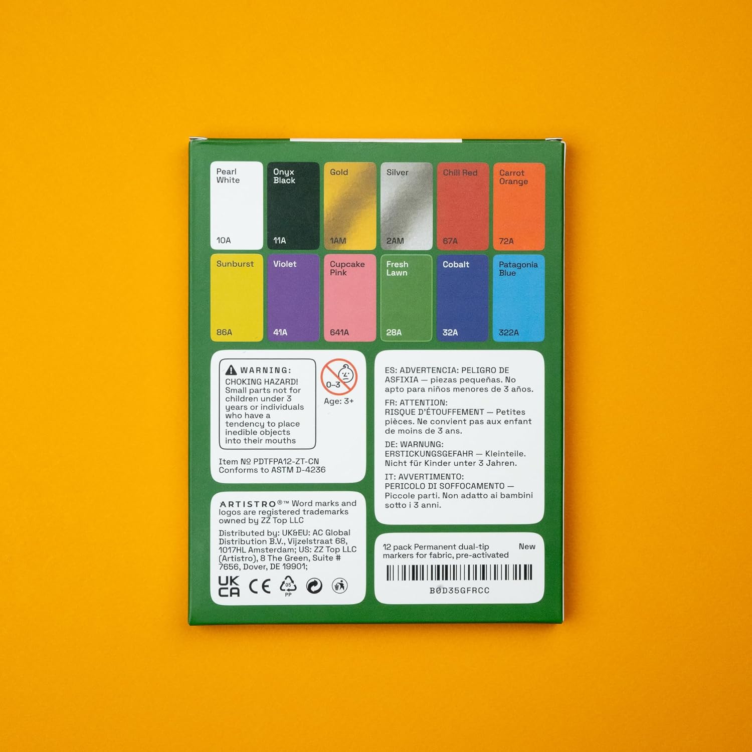 ARTISTRO 12 Dual-Tip Fabric Markers - Fabric Decorating Kit - Permanent for Clothes - No Bleed Pens for T-Shirts, Bags, Textile, Canvas, and More (Brush Tip and Fine Tip)