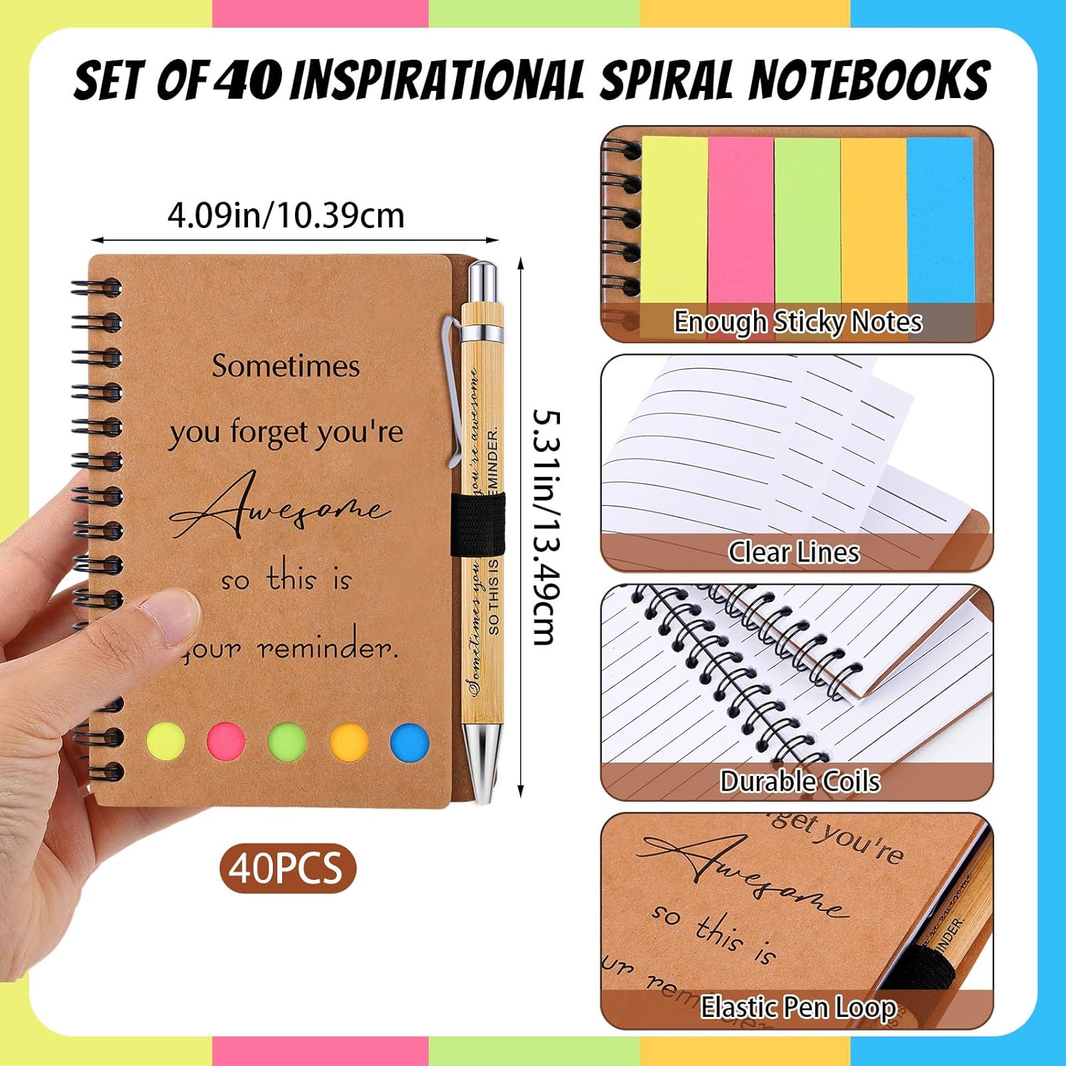 40 Sets Employee Appreciation Gifts Inspirational Spiral Notebooks with Sticky Notes Notepads Thank You Bamboo Ballpoint Pens Bulk for Coworker Nurse Teacher (SOMETIMES)