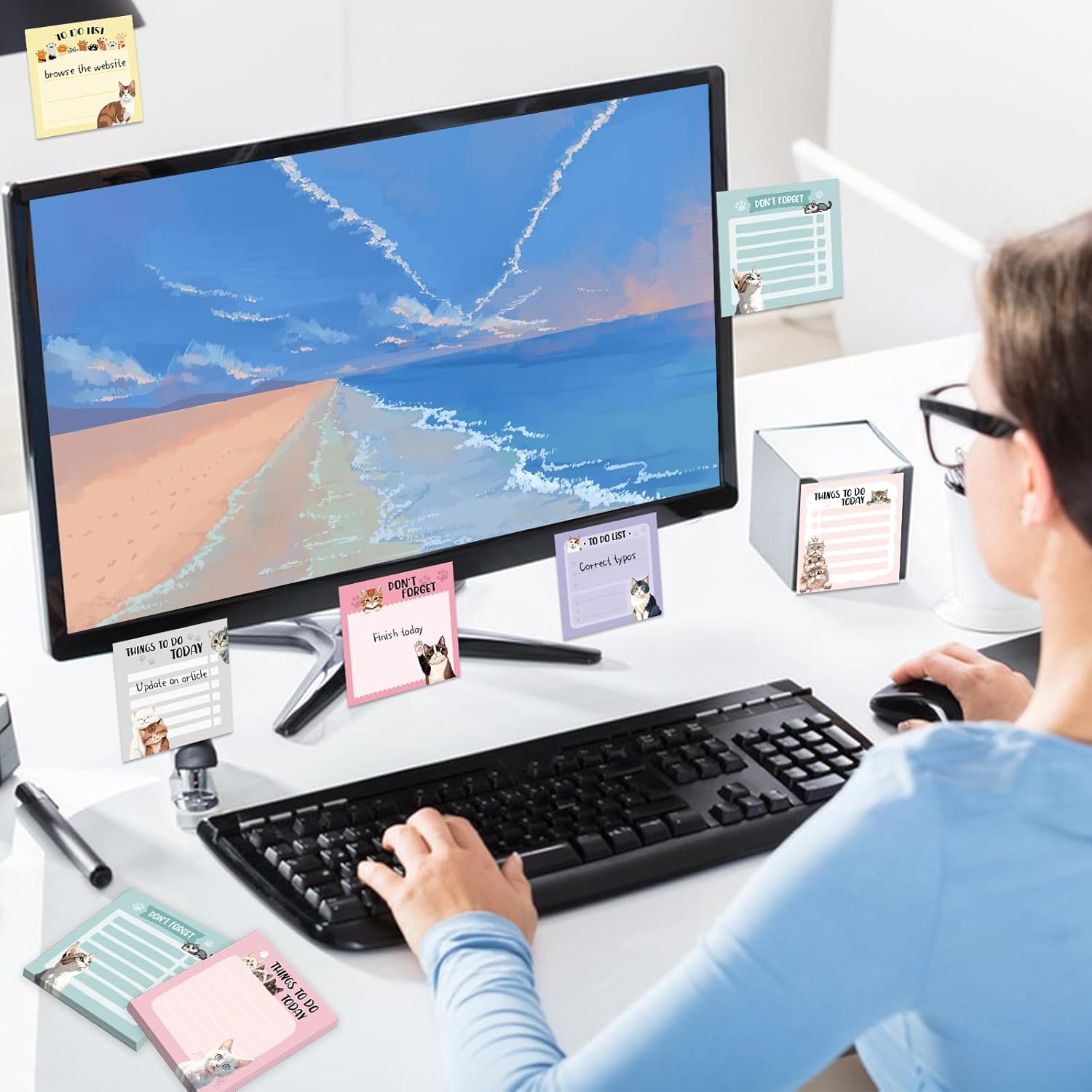 - Cute Cat Theme Design: Cartoon animal to do list feature warm words and lovely cat-themed patterns that are colorful and attractive. Beautiful cartoon cat post it notes can not only attract attention, but also add more fun to writing to-do lists, important messages or daily sticky notes.