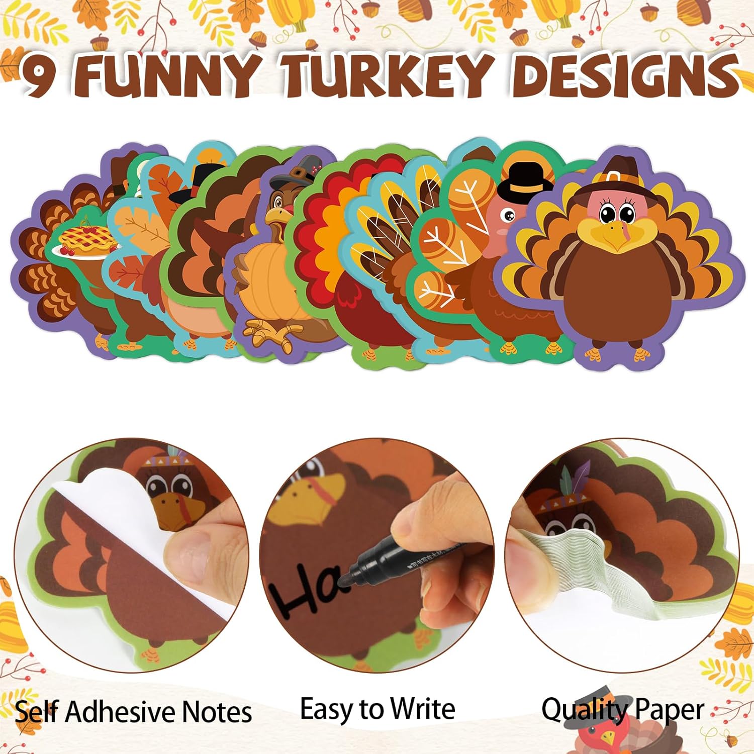 - Perfect Holiday Favors: Thanksgiving turkey sticky notepad are perfect for Thanksgiving party decor, fall themed party favors and turkey themed decor for added fun. Turkey shaped sticky notes are cute and practical, can be used as holiday favors or birthday favors for students, teachers, coworkers