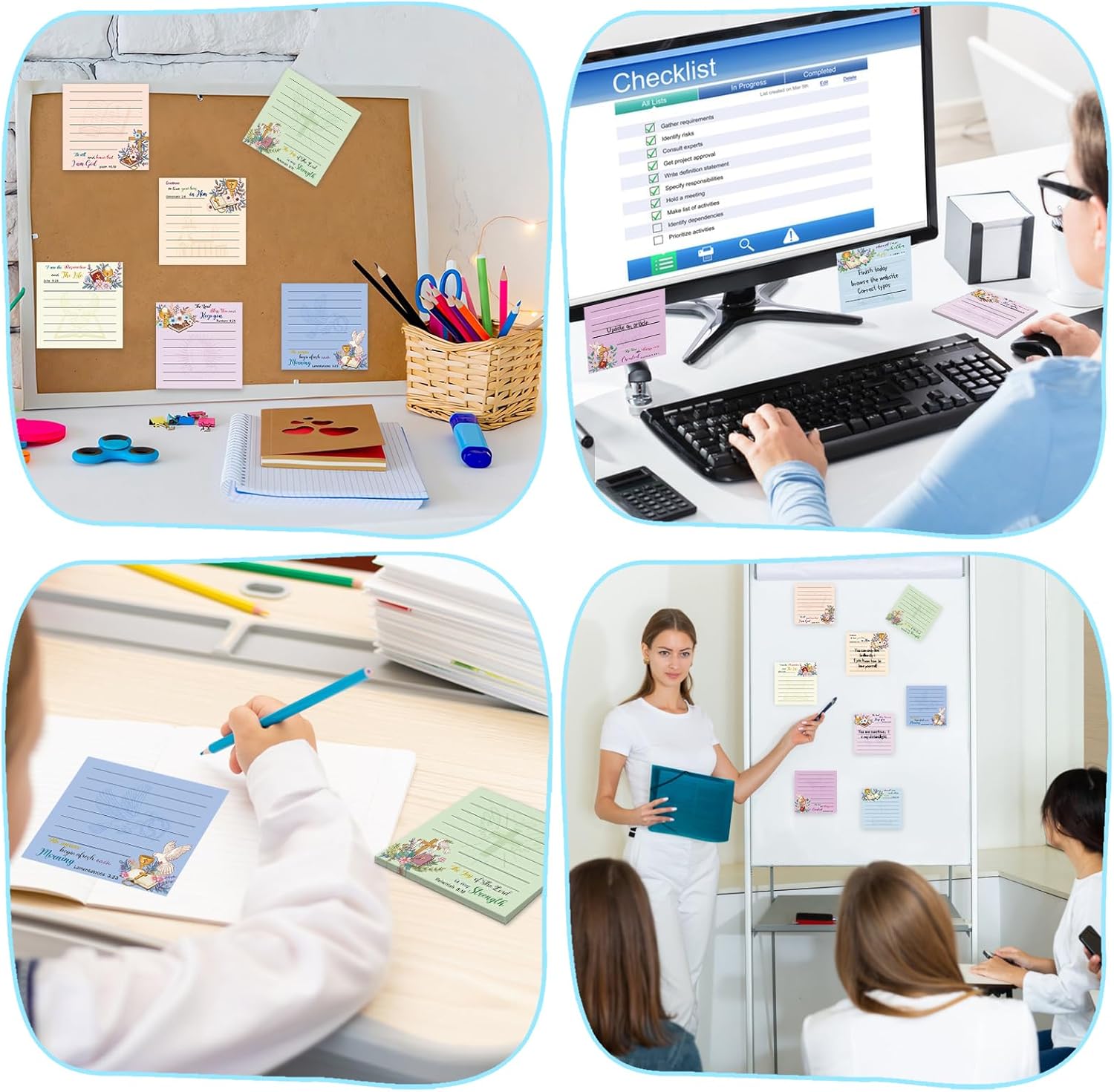 - Wide Application:These cute Christian notepads are suitable for home, office and school, you can stick the inspirational notepads in books, computers, desks, bulletin boards, walls, fridges and more. Bible notepads can be used to record work matters, categorize and organize item information, label files and books, deliver messages, bento greetings, etc, making your life easier!