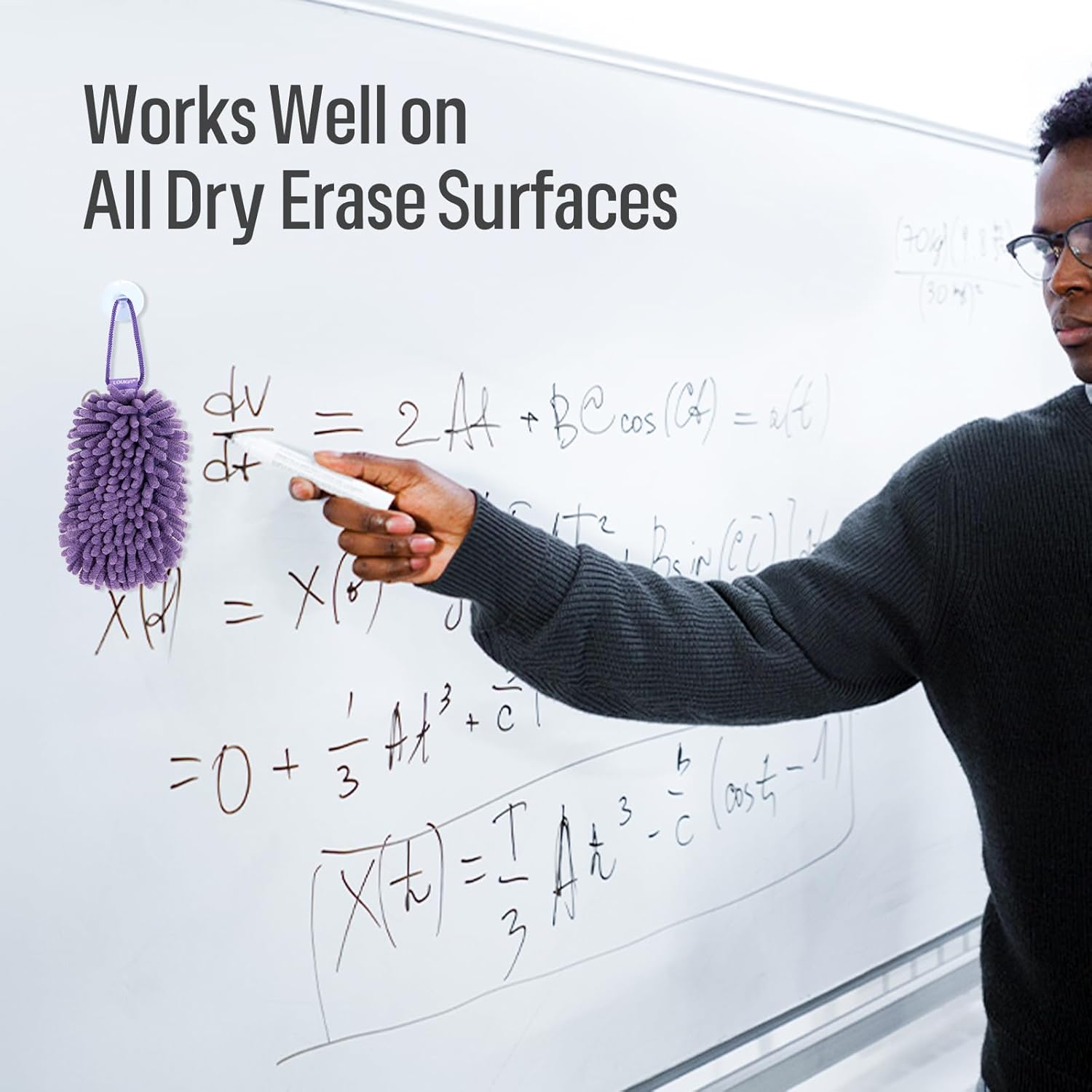 loukin Shag Dry Erase Eraser (3.4 Fl Oz Whiteboard Cleaner Included), Whiteboard Eraser with Suction Cup, Microfiber, Washable, for Classroom, Home and Office Use, Purple