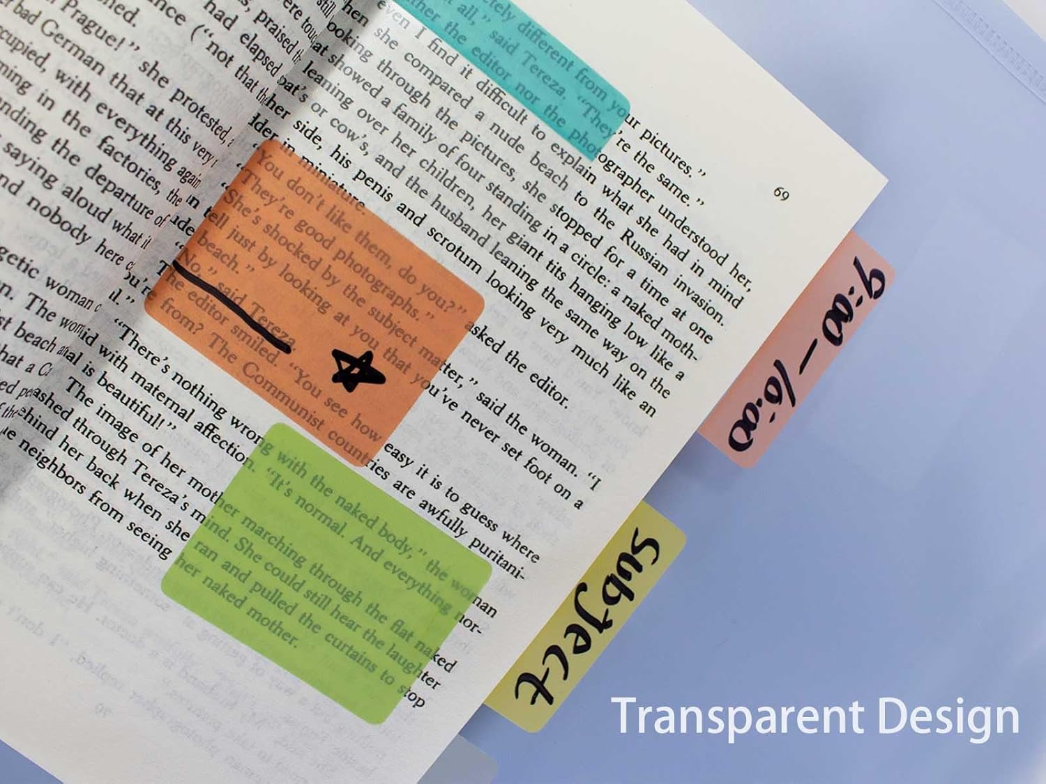 - Safety Material: the book tabs made of BOPP material and special adhesive, waterproof, non-toxic, no odor, smooth writing; self adhesive part is transparent