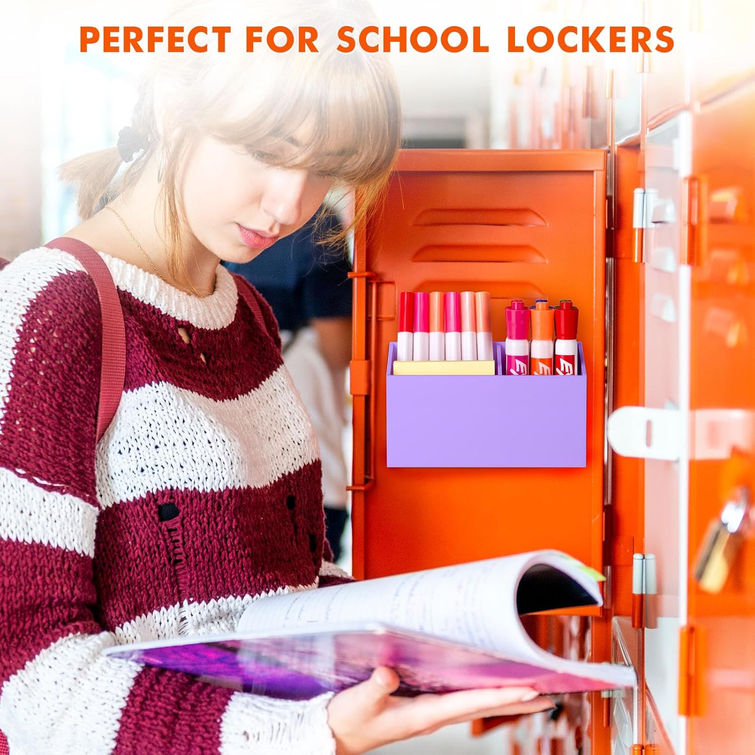 BEYGORM Magnetic Dry Erase Marker Holder for Whiteboard,Non-slip Acrylic Magnet Pen Holder for Fridge Refrigerator,Locker Organizer for Work,Locker Accessories,Pencil Cup for Desk(Purple)
