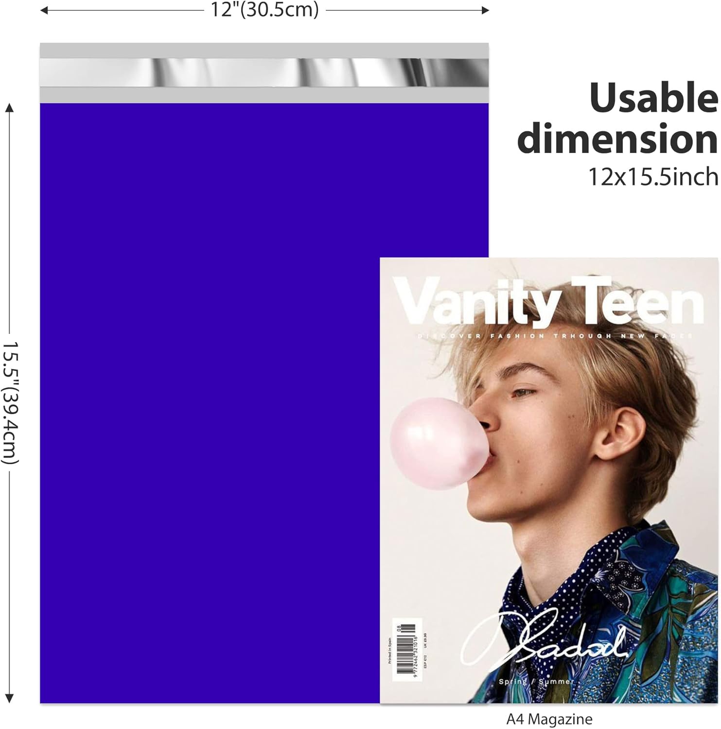 - 12x15.5 Poly Mailers-The Fuxury 12x15.5 plastic shipping bags,pack of 500pcs,with blue color.The bulk packing bags save your time on reordering,buy more save more.