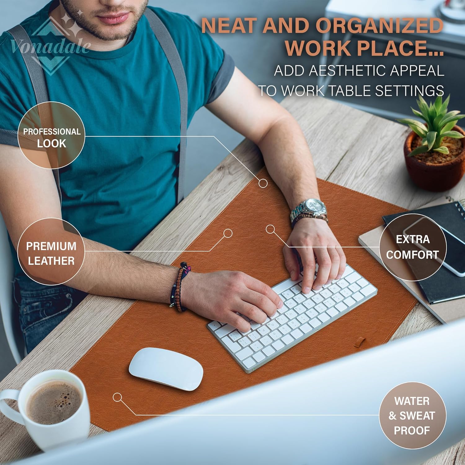 Leather Desk Mat Protector, Office Desk Pad Cable Organizer, Large Mouse Pad, Non-Slip PU Leather Desk Blotter, Laptop Desk Mat Pad, Waterproof Desk Matt Desktop (Brown 13.8" x 23.6")