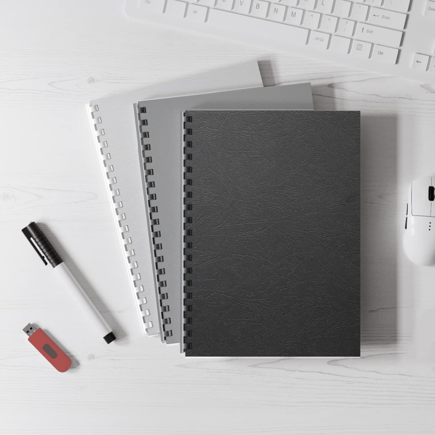 - 16 Mil Paper Cover: Each binding cover is made from 300 GSM (110 lb) midweight paper, providing a thickness of approximately 16 mil. These paper covers are designed to resist bending, offering reliable protection for important documents.