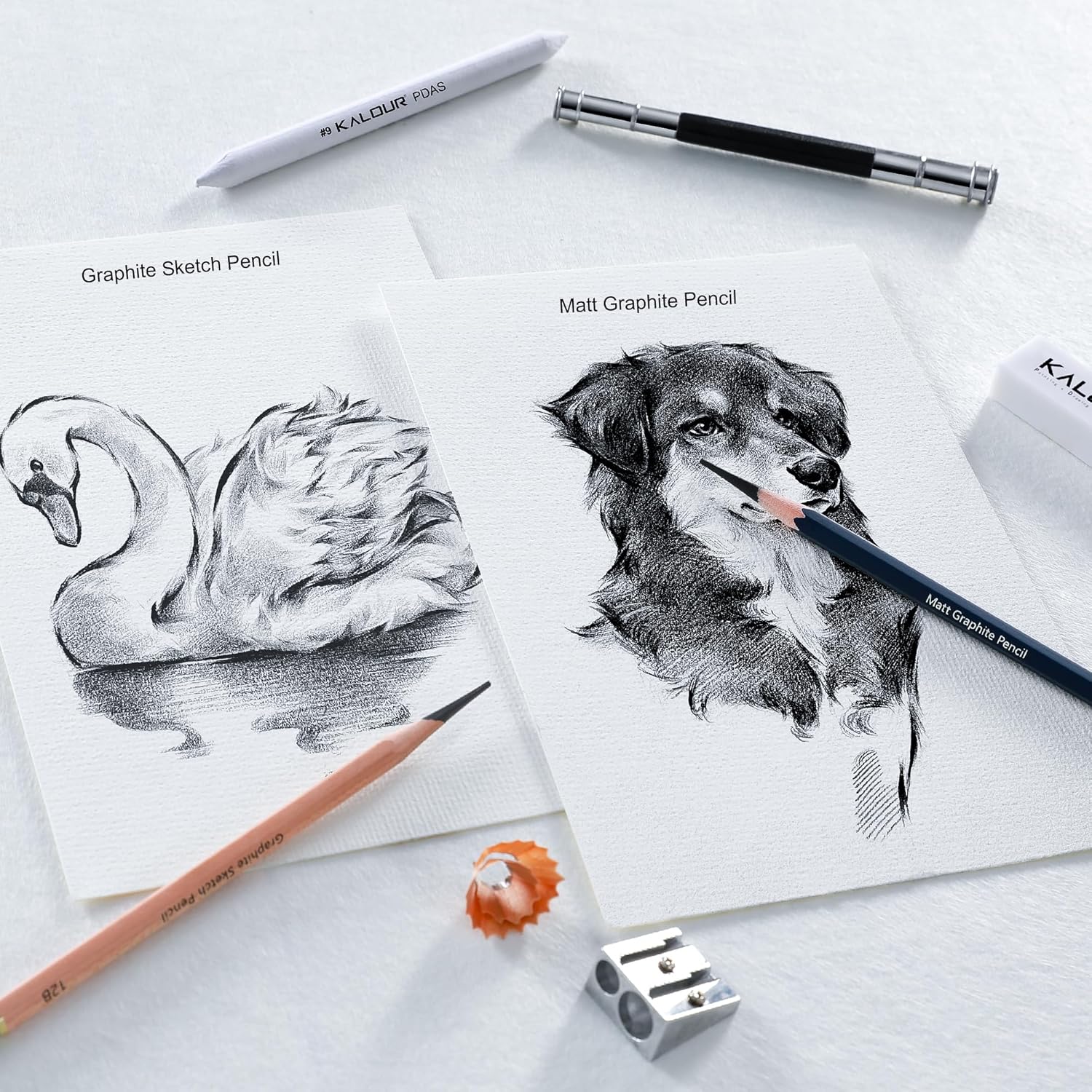 - Essential Art Tools: Includes 1 vinyl eraser for clean corrections, 1 kneaded eraser for blending and subtle adjustments, 1 double-hole sharpener to keep your pencils sharp, 1 pencil extender for extended use, and 1 paper blending stump for smooth shading and transitions.