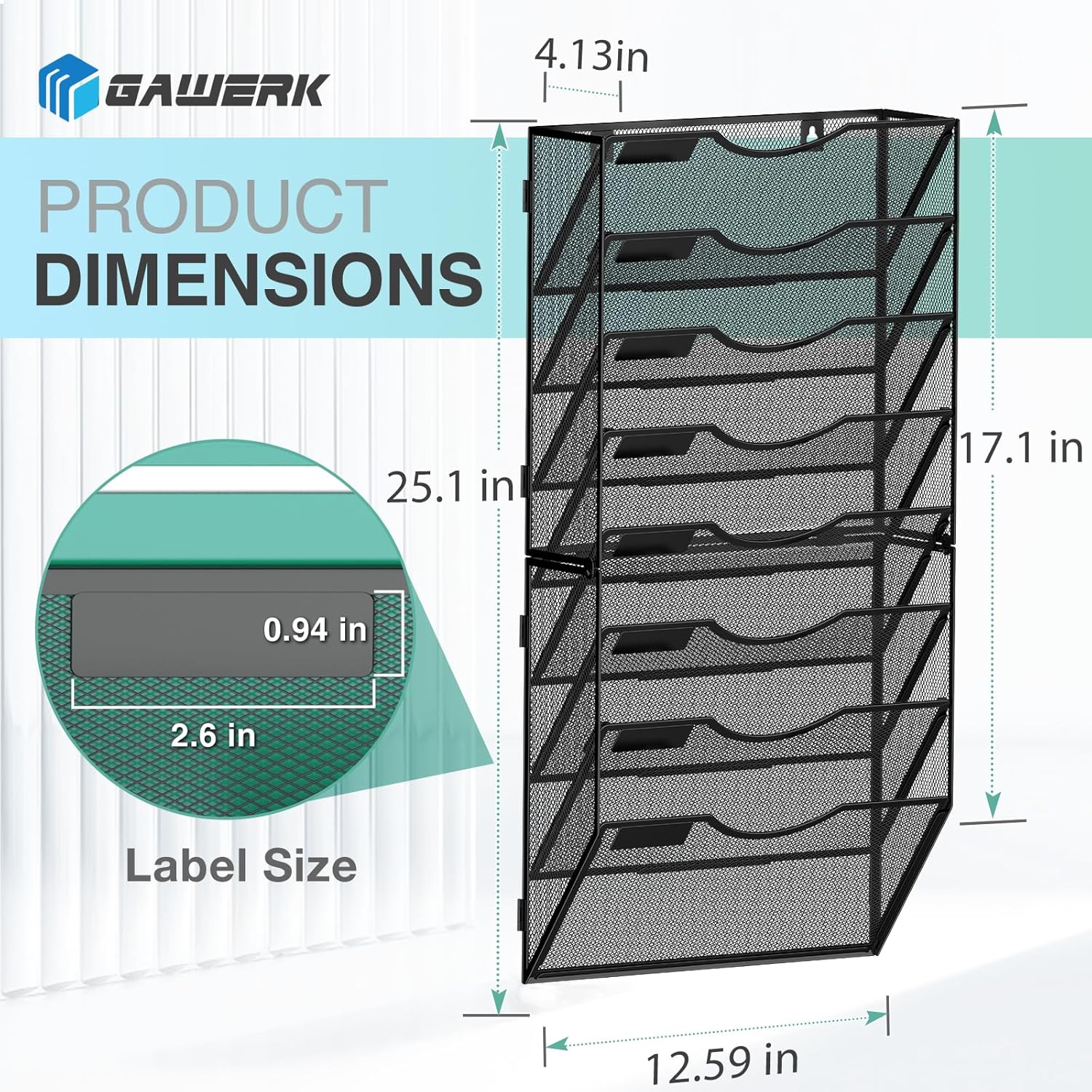 - Easy to Install - This mail organizer wall comes with mounting screws, you only need to drill 2 holes to mount it to the wall. And Our 8-tier wall paper organizer has an elegant look design with upgraded powder coat finish, anti-oxidation and anti-rust, which is enough for many years.