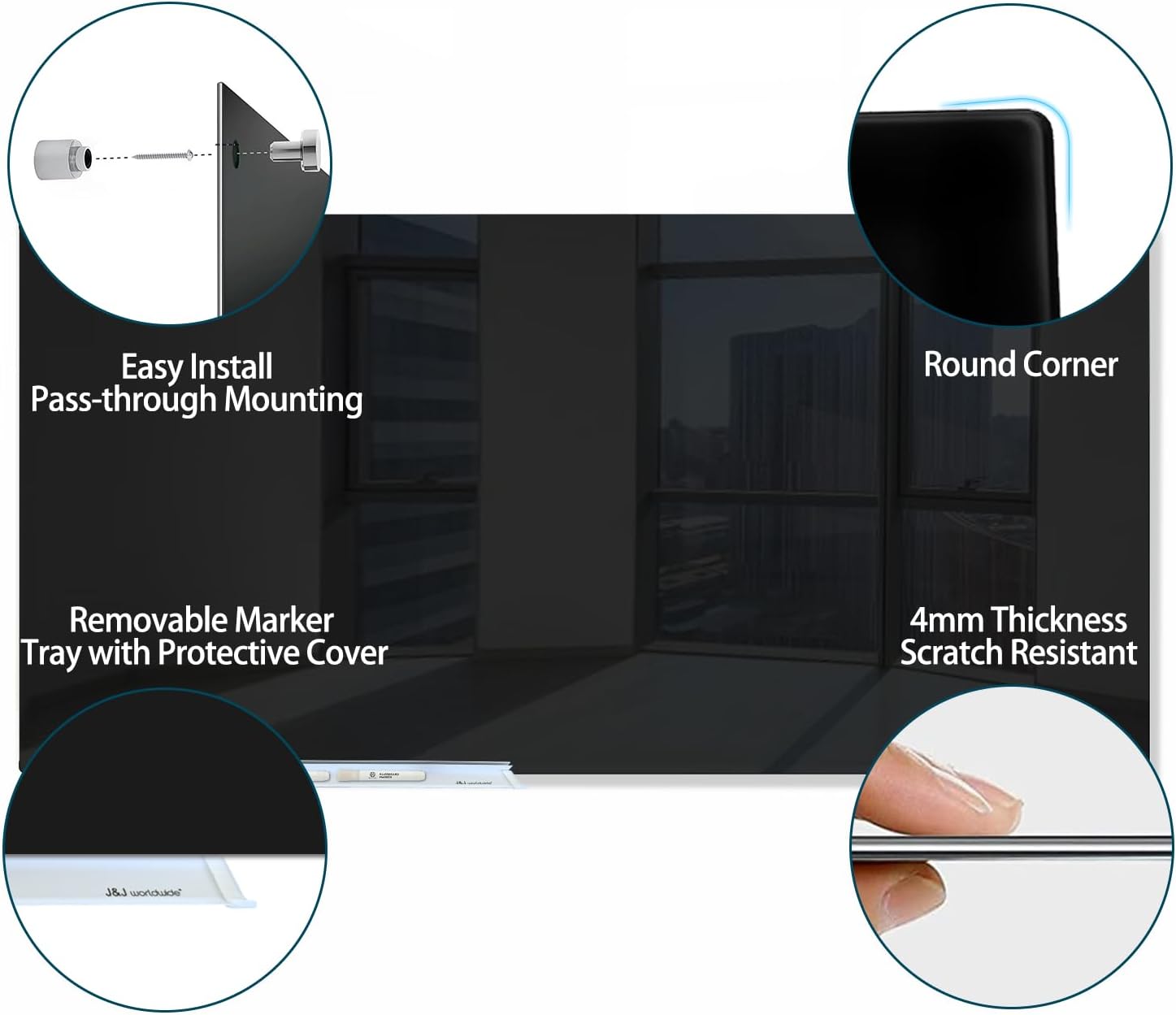 - 【CUSTOMER SUPPORT】: To avoid damage in transit, the glass whiteboards are shipped in a reinforced carton with additional polystyrene (foam) padding & cardboard corner protectors to secure the glass board. Please feel free to contact us If you have any questions with the J&J worldwide glass dry erase board
