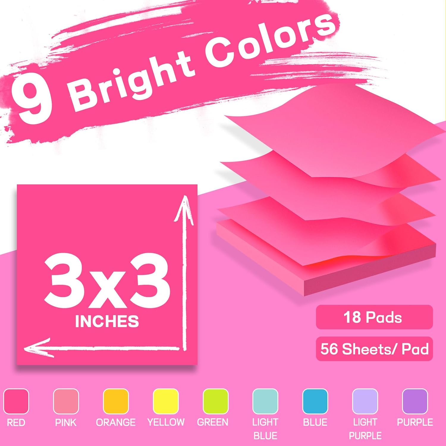 - Aesthetic Color: 9 Bright sticky notes let the memo catch your eye more easily.(Red, Yellow, Orange, Green, Blue, Light Blue, Purple,Light Purple,Light Pink)