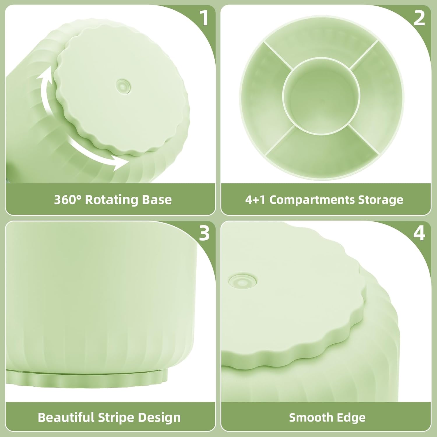 - ăSpace-Savingă: The special round design of the organizer was designed to make items easy to reach, even when stored on upper shelves; Divided into 5 compartments, this spinning container makes it easy to separate and store a wide variety of items; Use this convenient storage to keep children's crafting items all in one place; Great for school supplies, Perfect for home or commercial workspaces