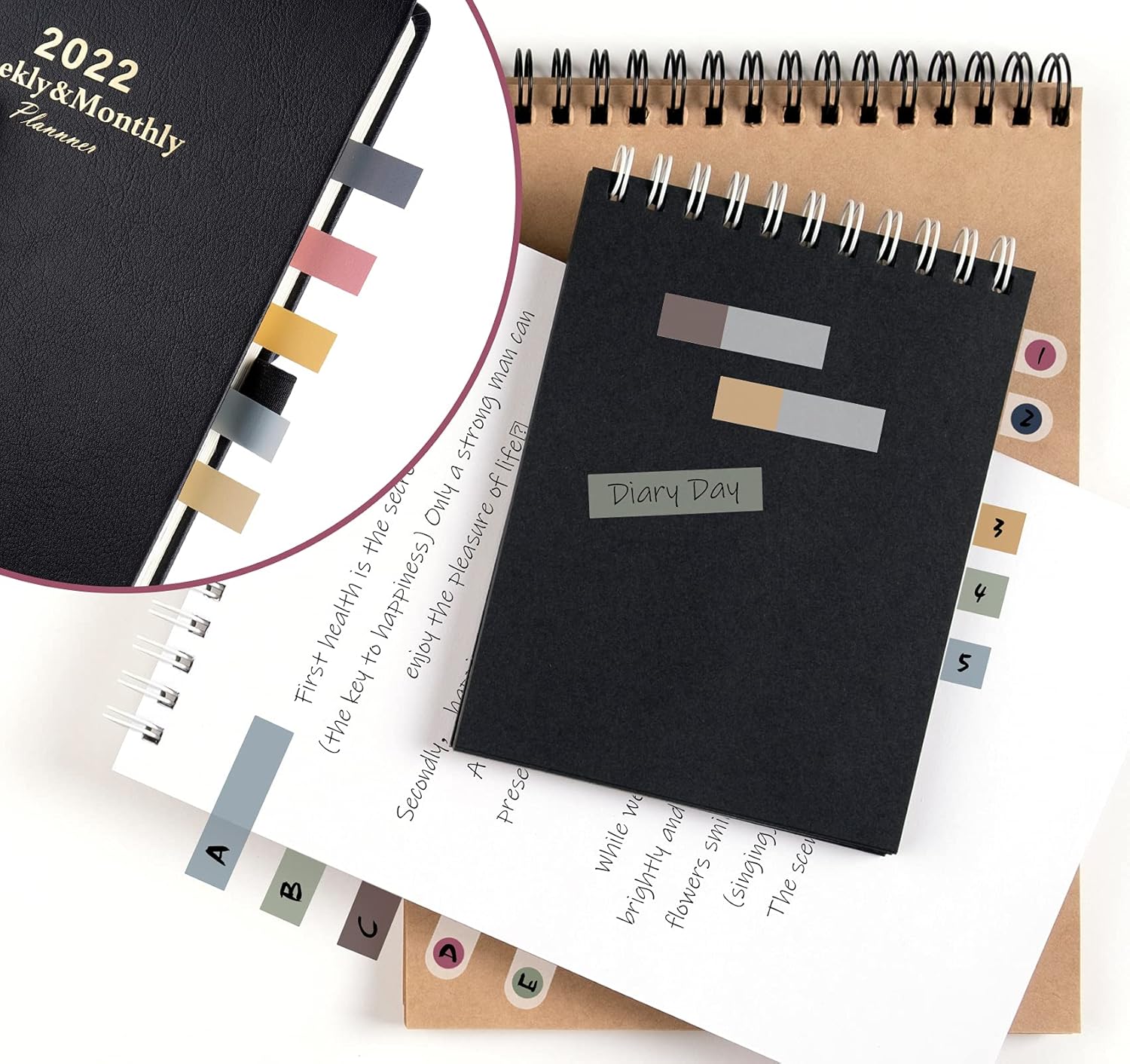- 【WRITABLE AND REPOSITIONABLE】The label is half self-adhesive, half can be written, and can be repositioned for easy pasting and marking, and clean up. Notebook tabs strong stickiness, but does not hurt the paper, easy to tear off . Get crisp and clear writing of the smudge-resistant tab when using most pens, pencils, markers and highlighters.