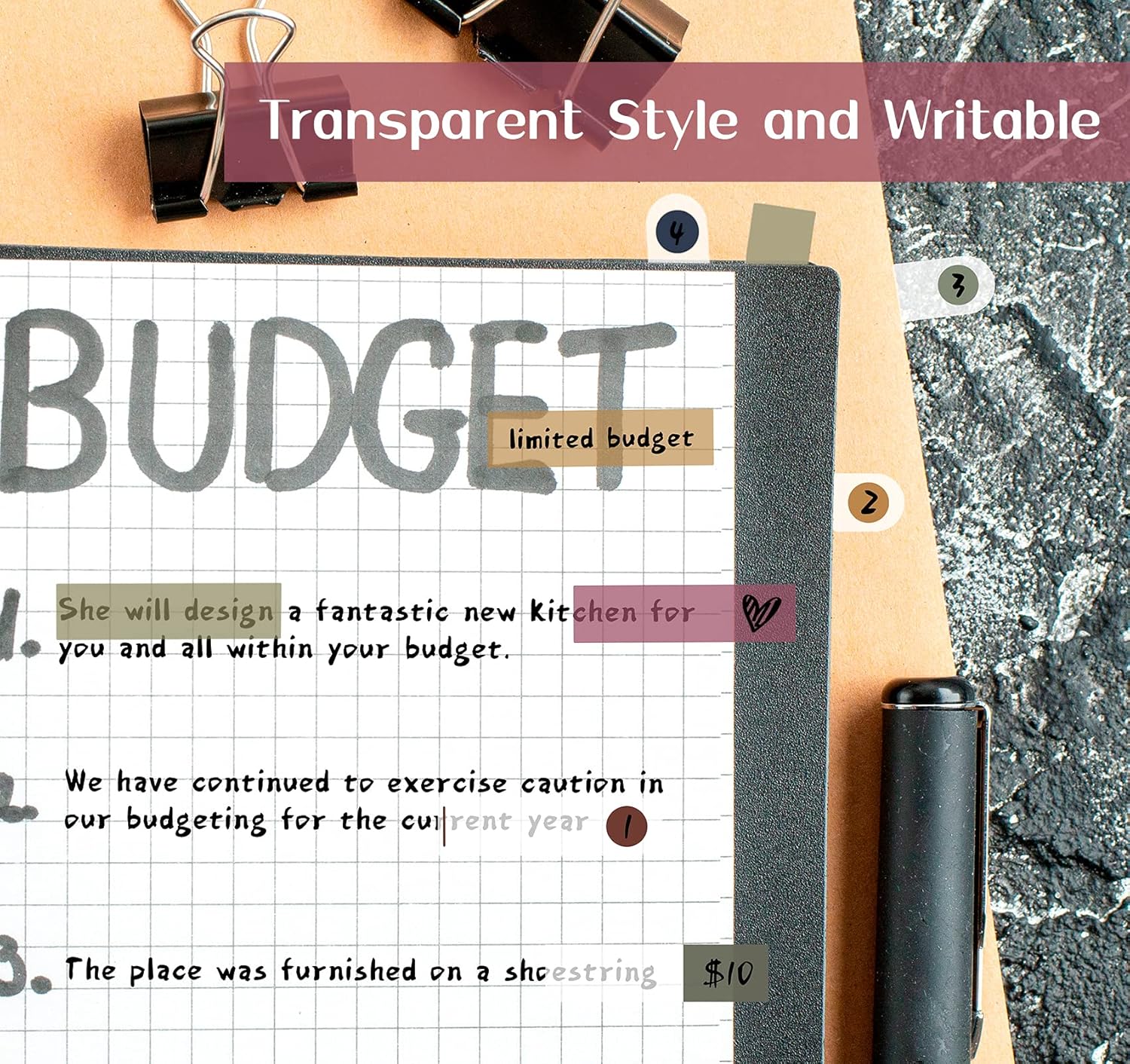 - 【MULTIPLE USE】Transparent page tabs can be used to classify and mark documents, computer message boards, reading notes, books, folders, diaries, catalogs, archives, files and papers, and are very suitable for office file filing, note-taking tool for students and daily life memo annotation tabs, these book sticky tabs are recommended to write with a ballpoint pen or pencil.