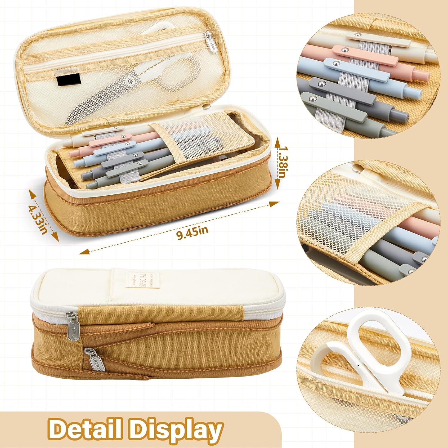 - Satisfy Your Use Needs: pencil case measures about 9.45 x 4.33 x 1.38 inch/ 24 x 11 x 3.5 cm, and khaki color, cute pencil bag can be folded, compact and convenient to store and carry around