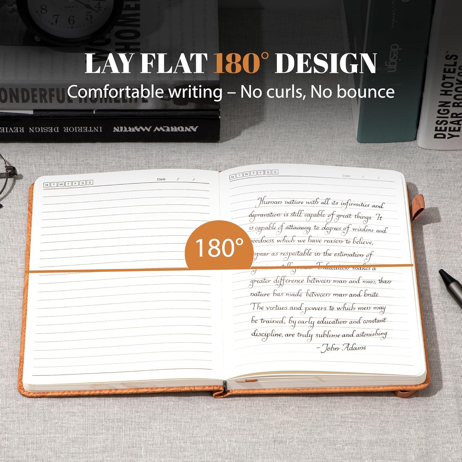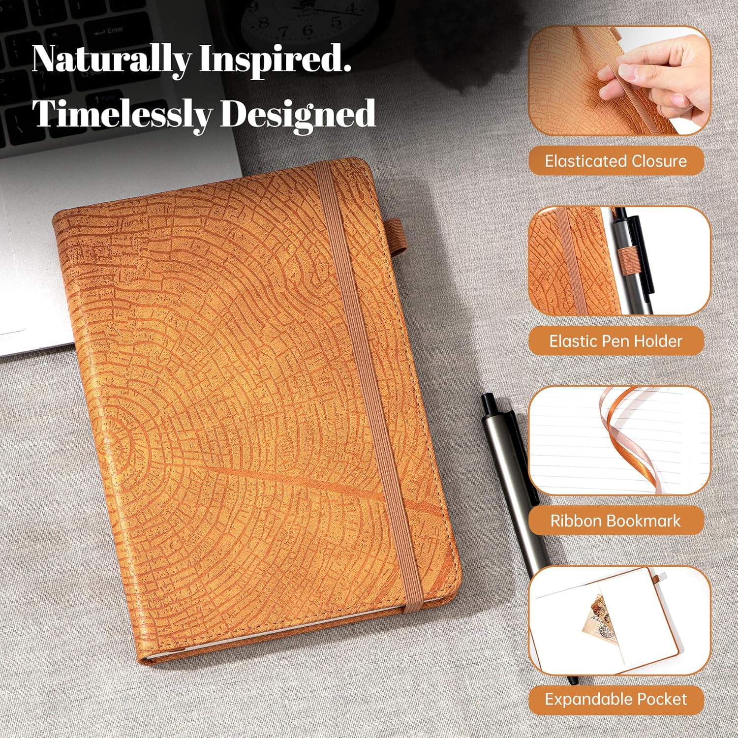 - Special Feature : 100 GSM Thick Paper, Bookmark, Debossed Tree Ring Pattern Cover, Hard Cover, Pen Holder