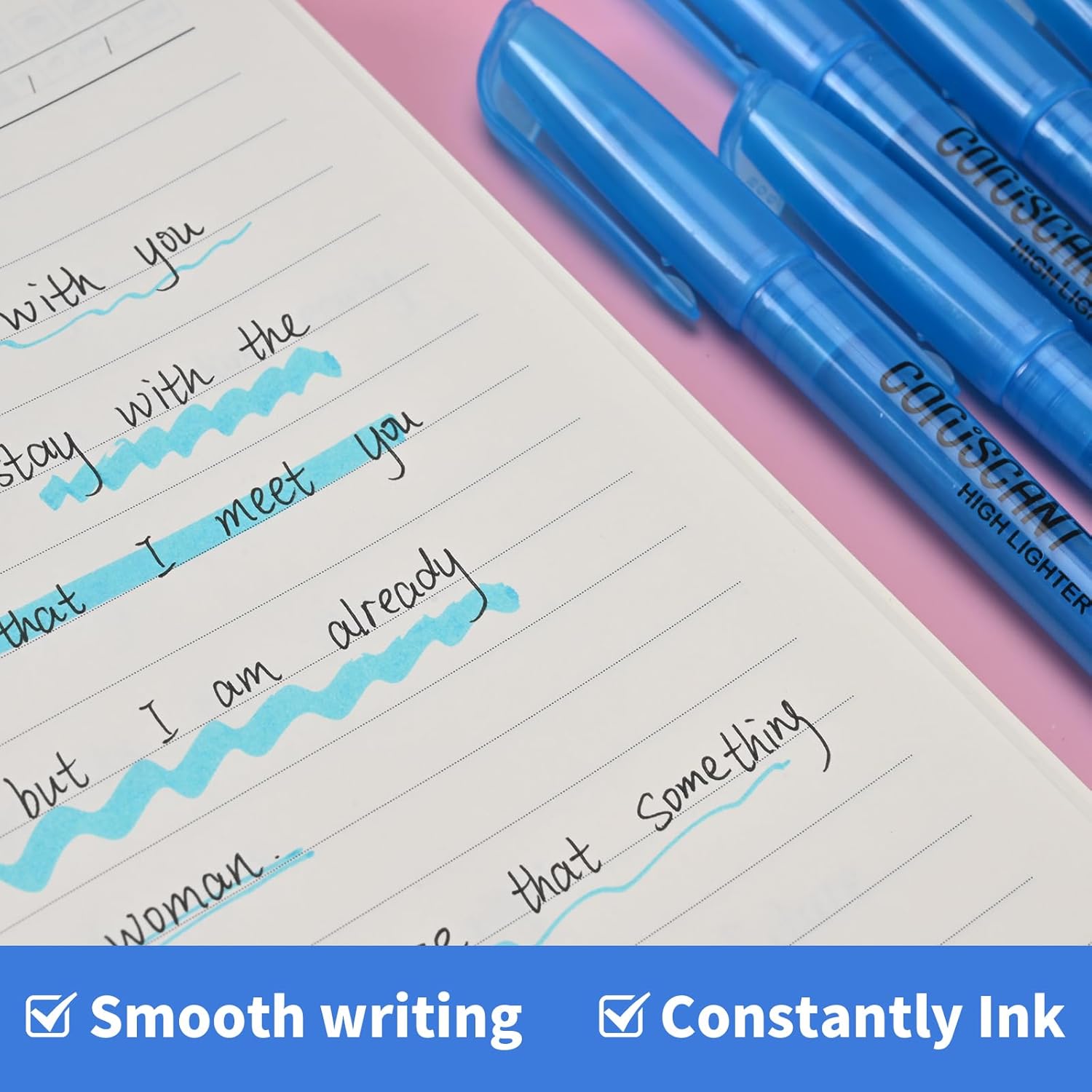 - TRANSLUCENT INK: Made with semi-transparent ink, this blue highlighter ensures clear visibility of text underneath while still providing vibrant color to enhance your notes and documents