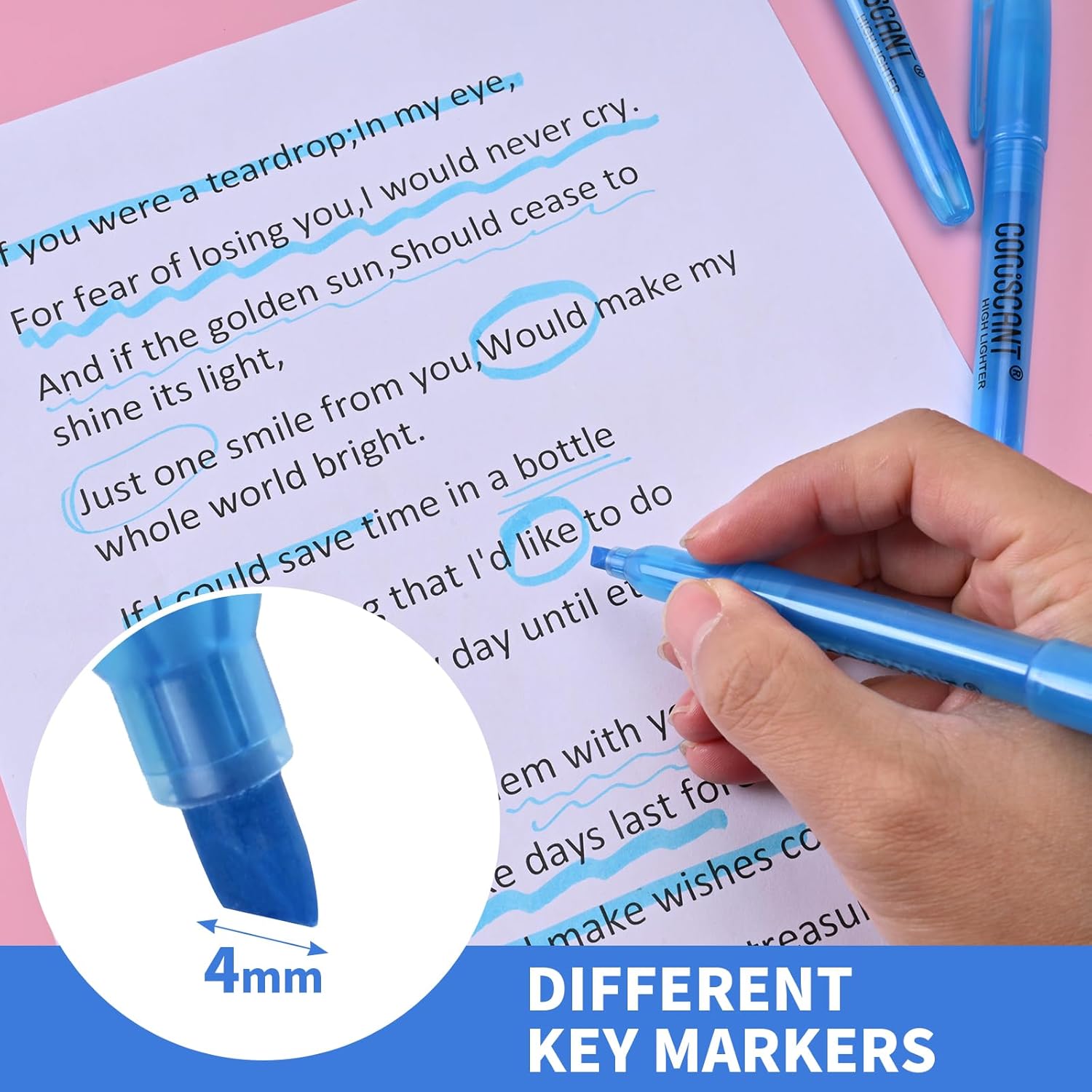 - CHISEL TIP DESIGN: The blue highlighter features a versatile chisel tip that allows for both broad and fine lines, making it perfect for underlining text or highlighting important information