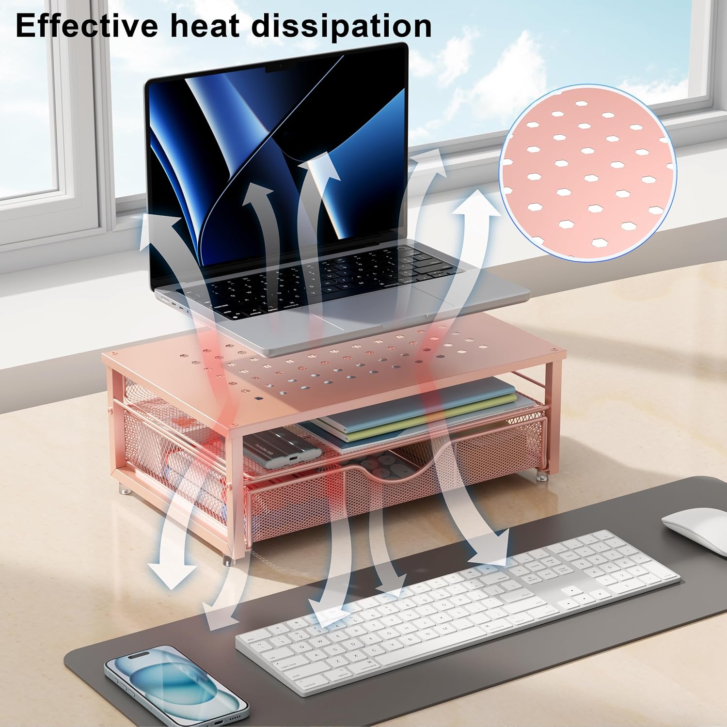 gianotter Computer Monitor Stand Riser, office organizer with Drawer, Office Organizers Storage for Classroom Office Supplies (Rose)